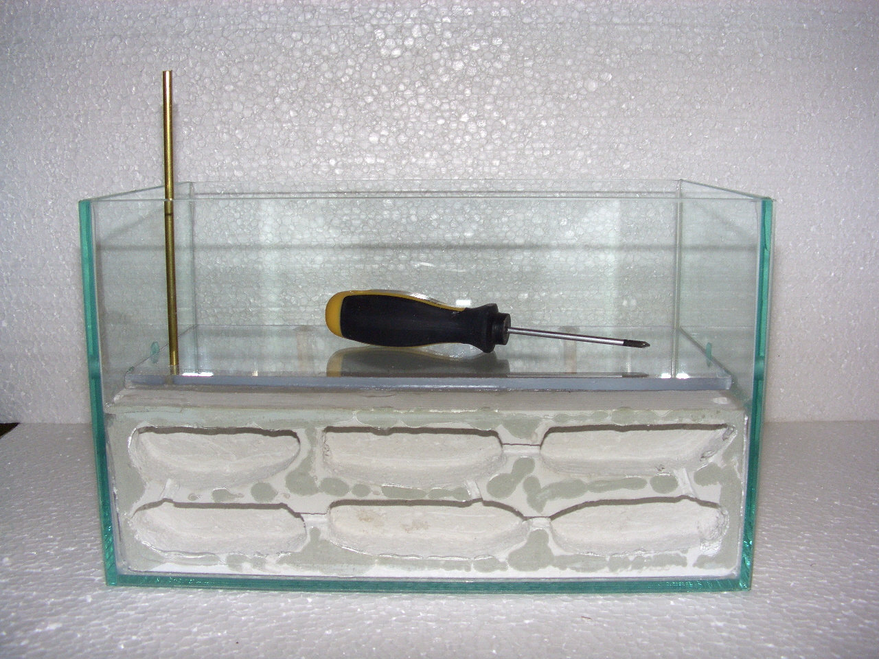 Das Gipsnest an eine Seite kleben mit z. B. Silicon und oben eine passende Plexiglasplatte als neuen Boden einbauen.