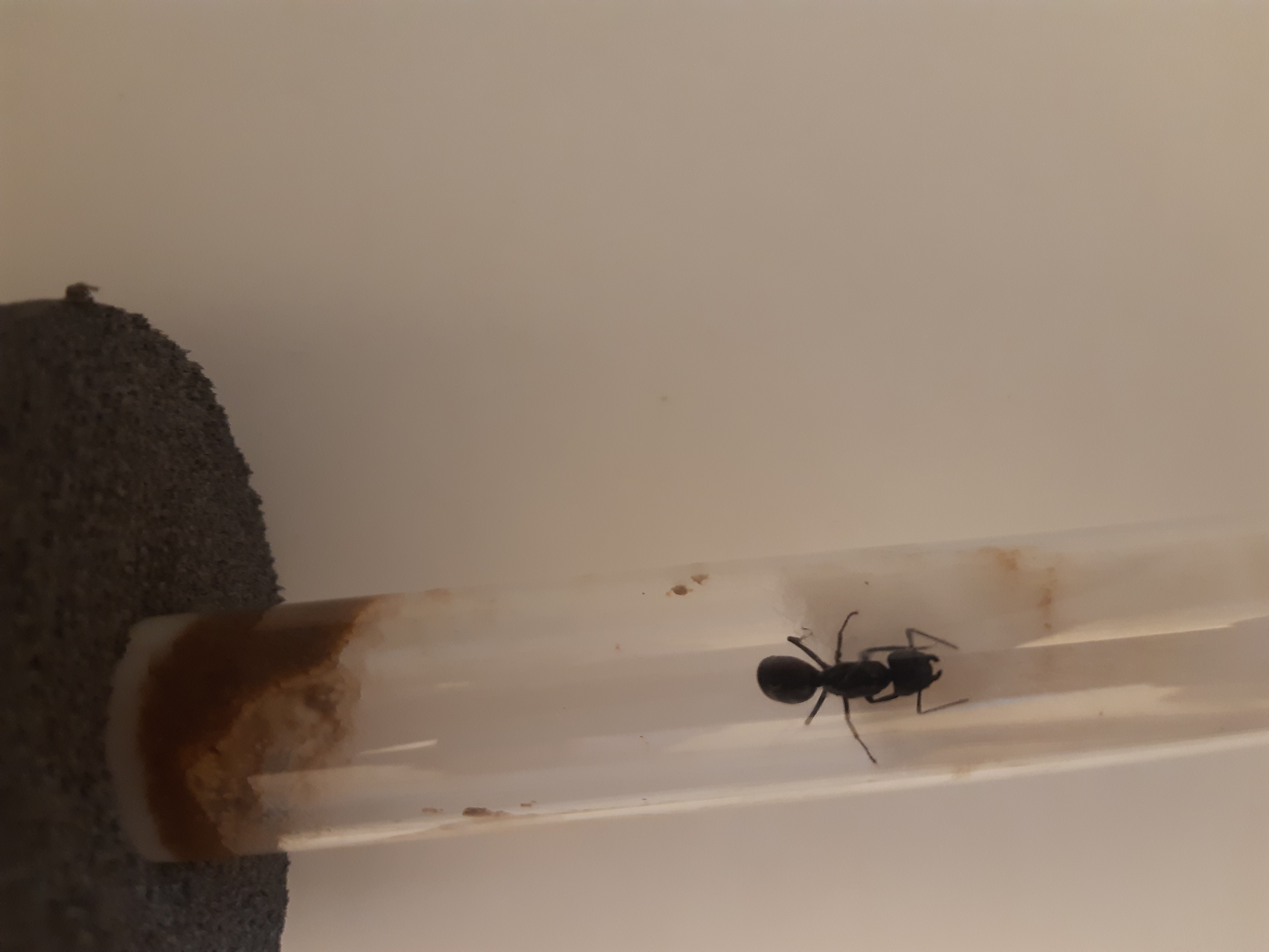 Ich möchte die Königin auch so wenig wie möglich stören und nur 1 mal die Woche maximal nachsehen oder alle 2 Wochen. Jedoch wollte ich gestern kurz nachsehen, ob das Setup passt wegen Feuchtigkeit und so (da ich es in Eile gemacht habe) und da hat sie eine Menge Watte vom Eingang schon weggezogen. Ich hatte das Gefühl, dass es zu trocken war und habe die Watte etwas weiter nach hinten in Richtung Wassertank geschoben und neu verschlossen und heute nochmal nachgesehen.