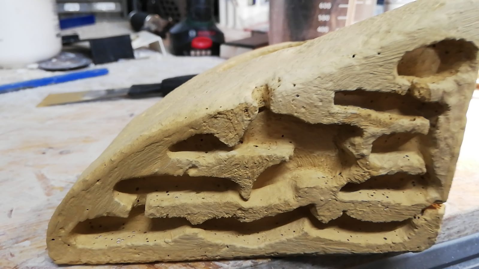 Das Ganze mit Hammer und Meißel sowie einer Raspelfeile in Form gebracht.