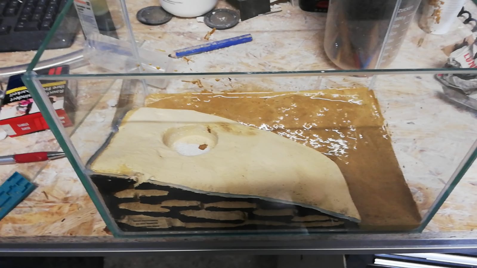 Die Stoßflächen noch mit Umbra bemalt, damit die Kammern besser zur Geltung kommen. Der Boden ist so eine Sand/Lehmmischung die ich mal gekauft hatte weil sie aussah wie aus dem Outback