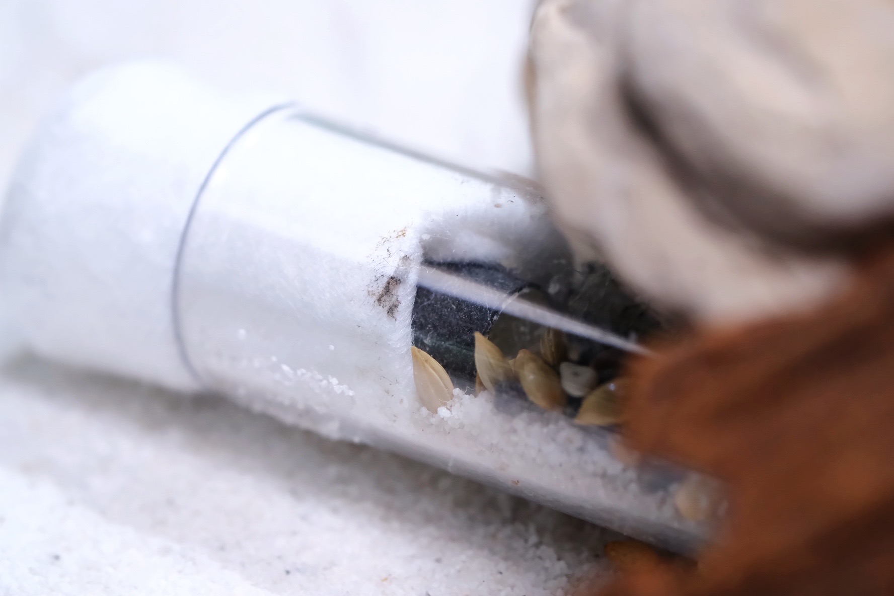 • Körner/Futter: Zuhause habe ich noch ein paar gemischte Futterröhren vom Antstore stehen. Also einmal dieses Mischpaket. Da werde ich nach und nach immer mal was von Anbieten. Hat bei den Messor barbarus vom Sohn Zuhause auch gut fkt.
