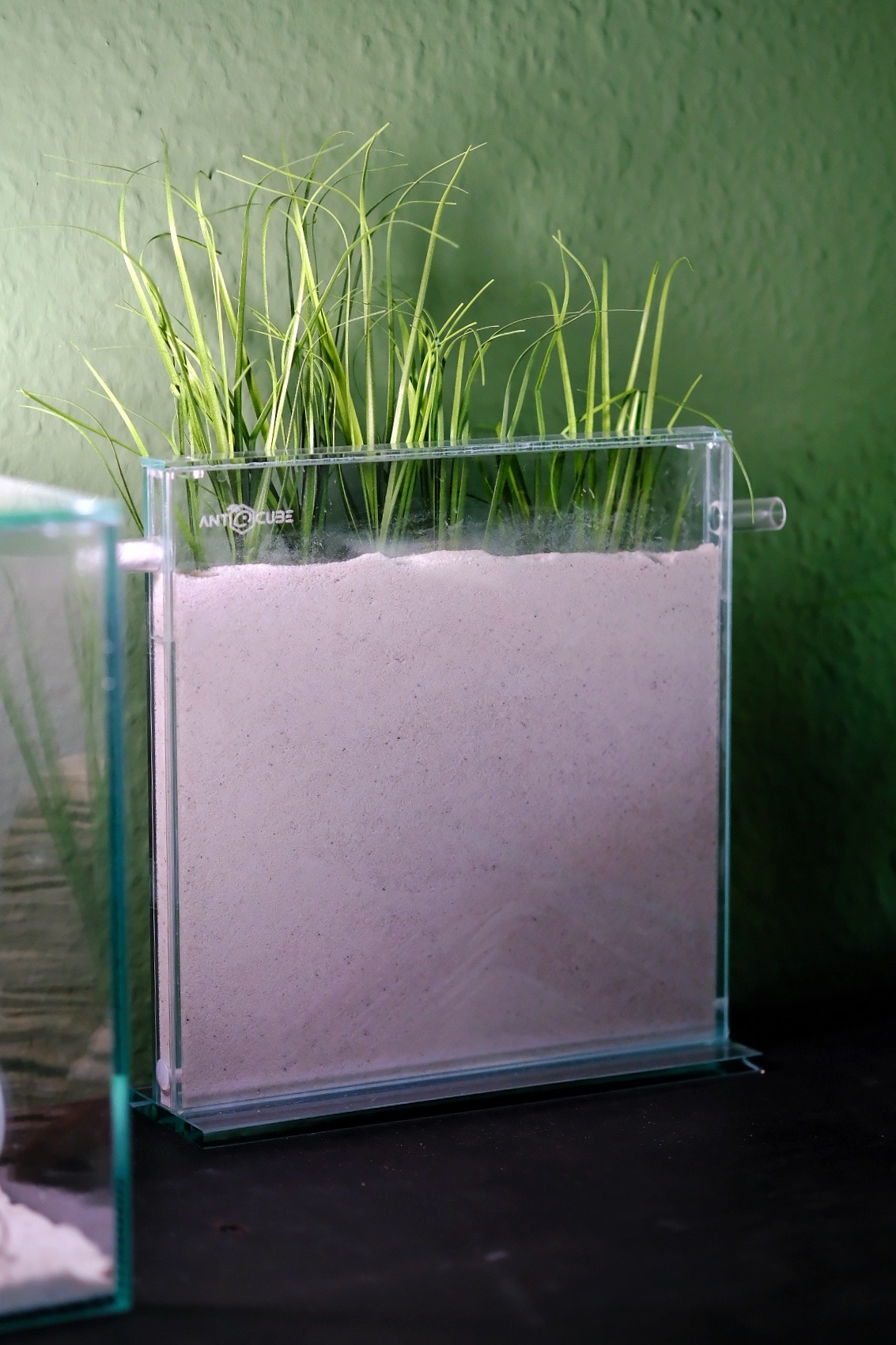 Nachdem ich die unbenutzte Farm, in der ich kurz die nun entflĂŒgelte Lasius emarginatus geparkt hatte, trostlos rumstehen sah, dachte ich, ich versuch's mal mit etwas Gras-Deko auf der RĂŒckseite. Vor meiner rasalgrĂŒnen BĂŒrowand, wirkt das, meiner Meinung nach, auch recht harmonisch, auch wenn's vllt. etwas viele Grashalme geworden sind. :)