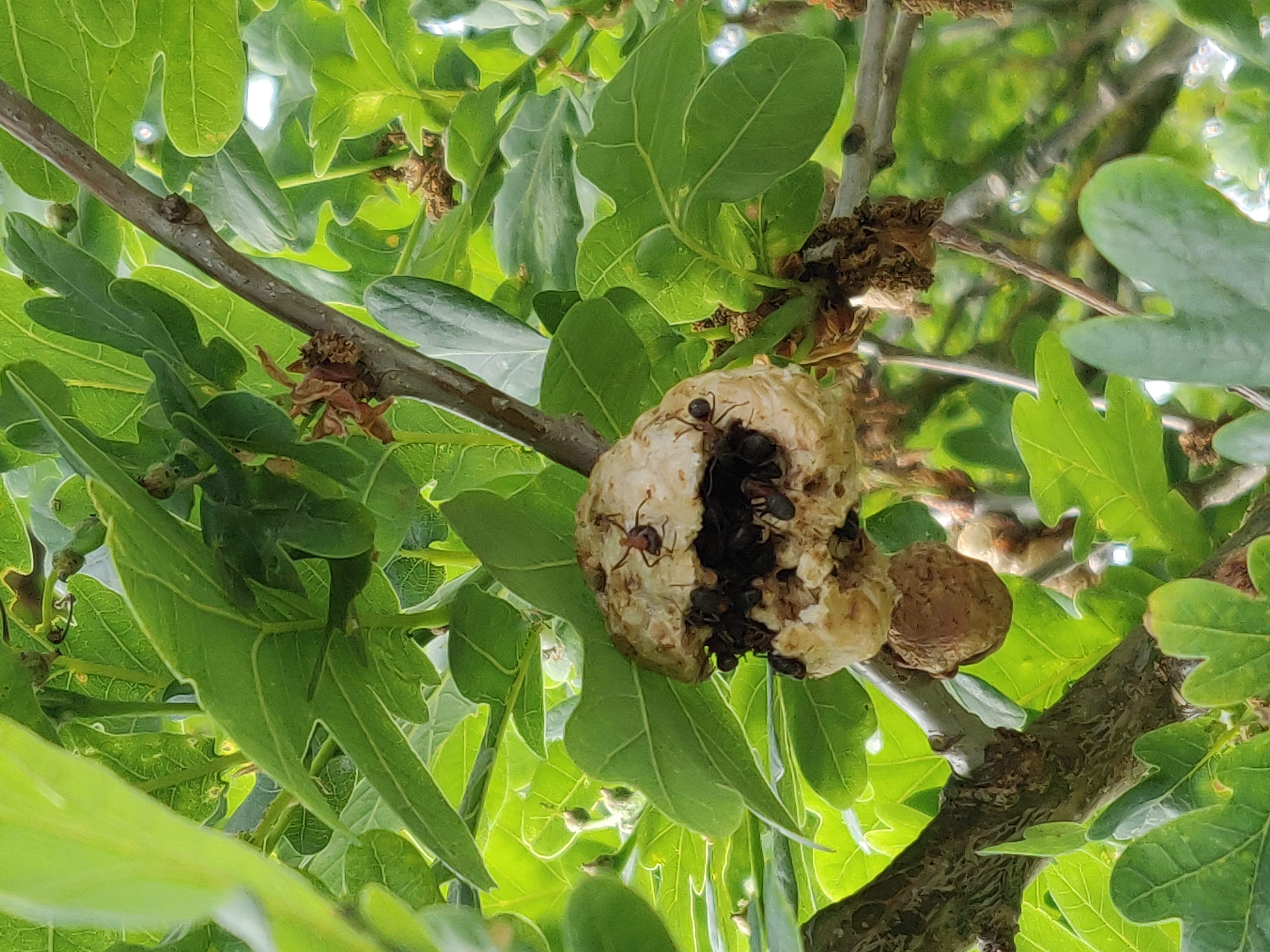 ich bin bei einer Wanderung in der Nähe von Cuxhaven auf eine Eiche mit Knollenartigen wüchsen an den Ästen vorbeikommen und habe beim näheren betrachten festgestellt, dass auf dem Baum und besonders den Knollen unglaublich viele Ameisen unterwegs waren.