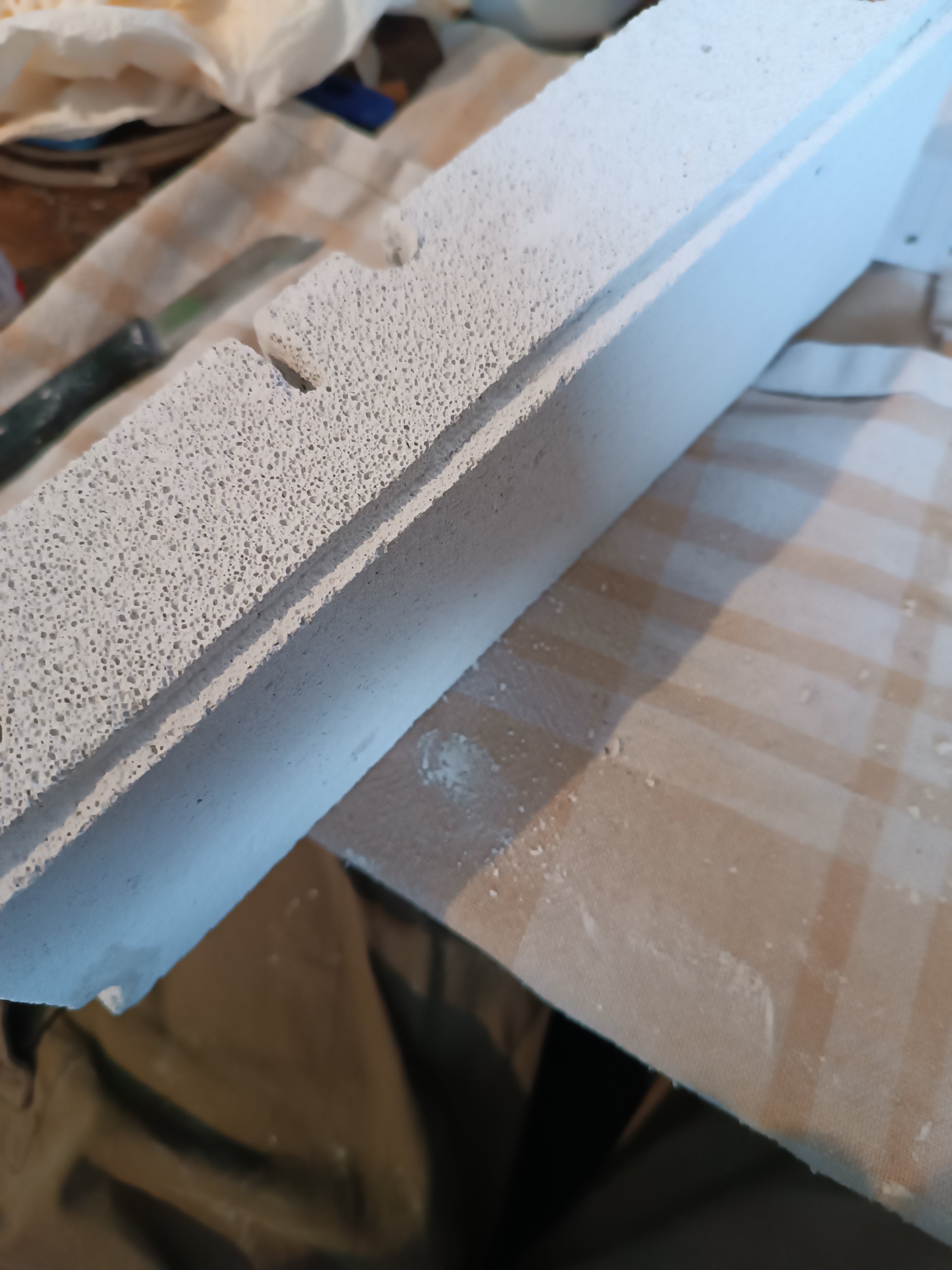 Meine nächsten Schritte bestanden darin, den Porenbeton auf das richtige Maß für das Becken zu sägen und danach noch Öffnungen zur Befeuchtung des Nestes zu bohren.