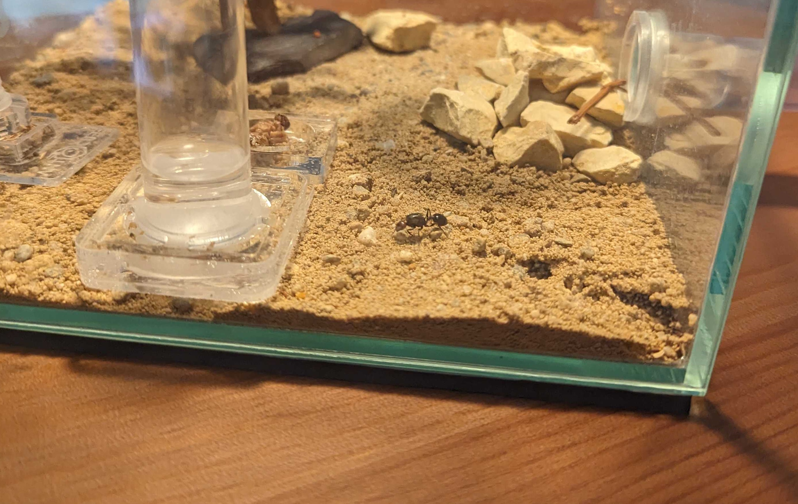 Würde dir aktuell aber dazu raten das Reagenzglas nochmal mit einem neuen Wassertank zu bestücken und abgedunkelt in der Arena zu platzieren. Für kleine Kolonien wirklich die optimale Nestform & eventuell ziehen sie nochmal dort ein.
