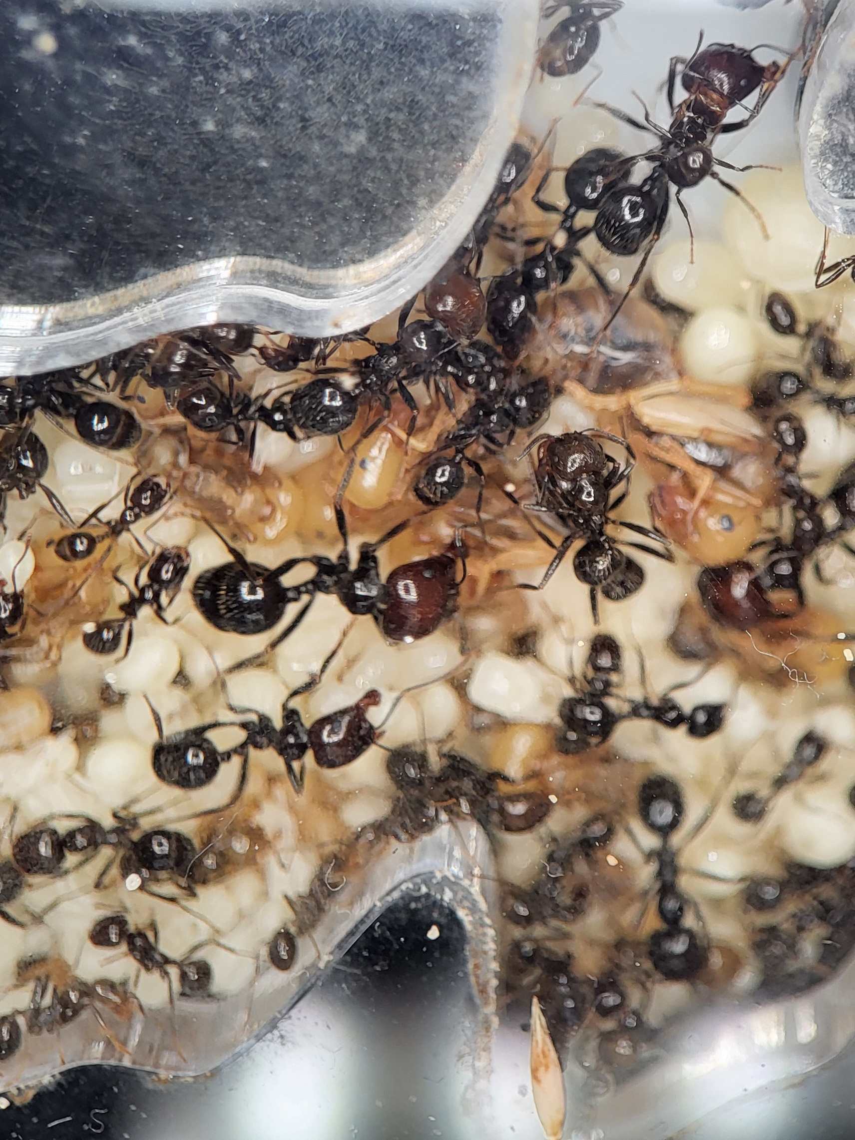 (Aufgrund der Neststörung sind ca. 20 - 30 Ameisen in die Arena gerannt).