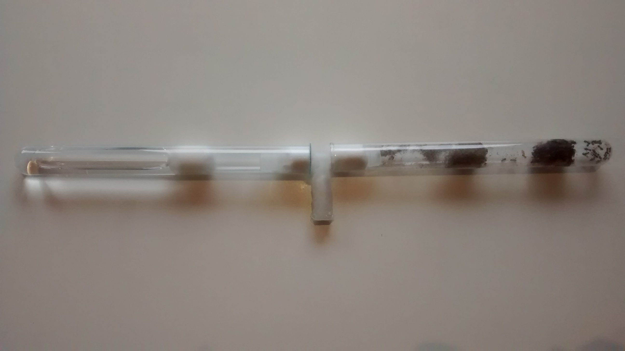 Wattestopfen. Ich habe bereits ein zweites Reagenzglas mit gefülltem Wassertank in die Arena gelegt, aber ein Umzug