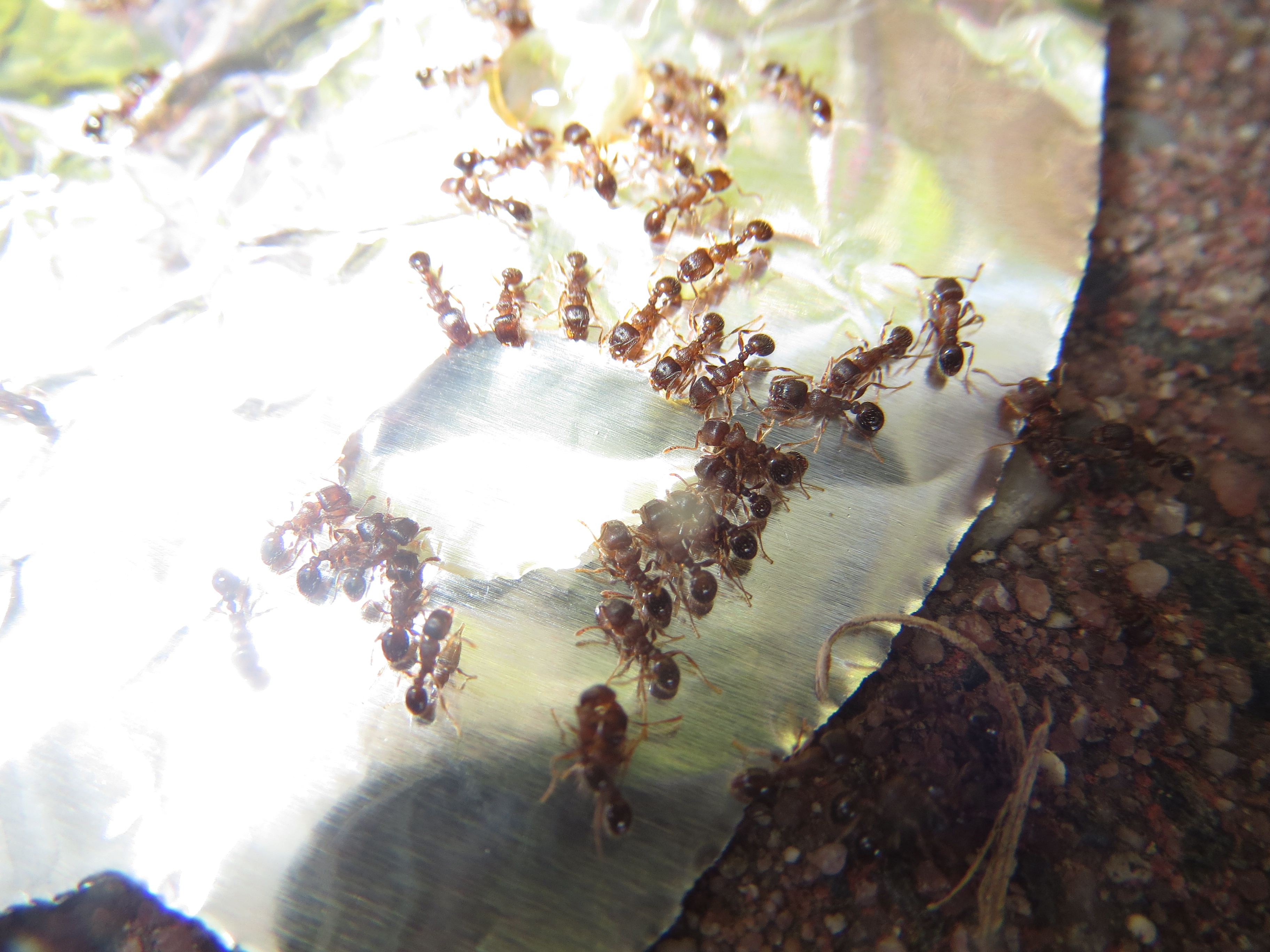 Kolonie, die schon etwas länger in unserem Garten lebt. Sie sind ca. 2-3mm groß. Um welche Art könnte es sich hierbei halten?