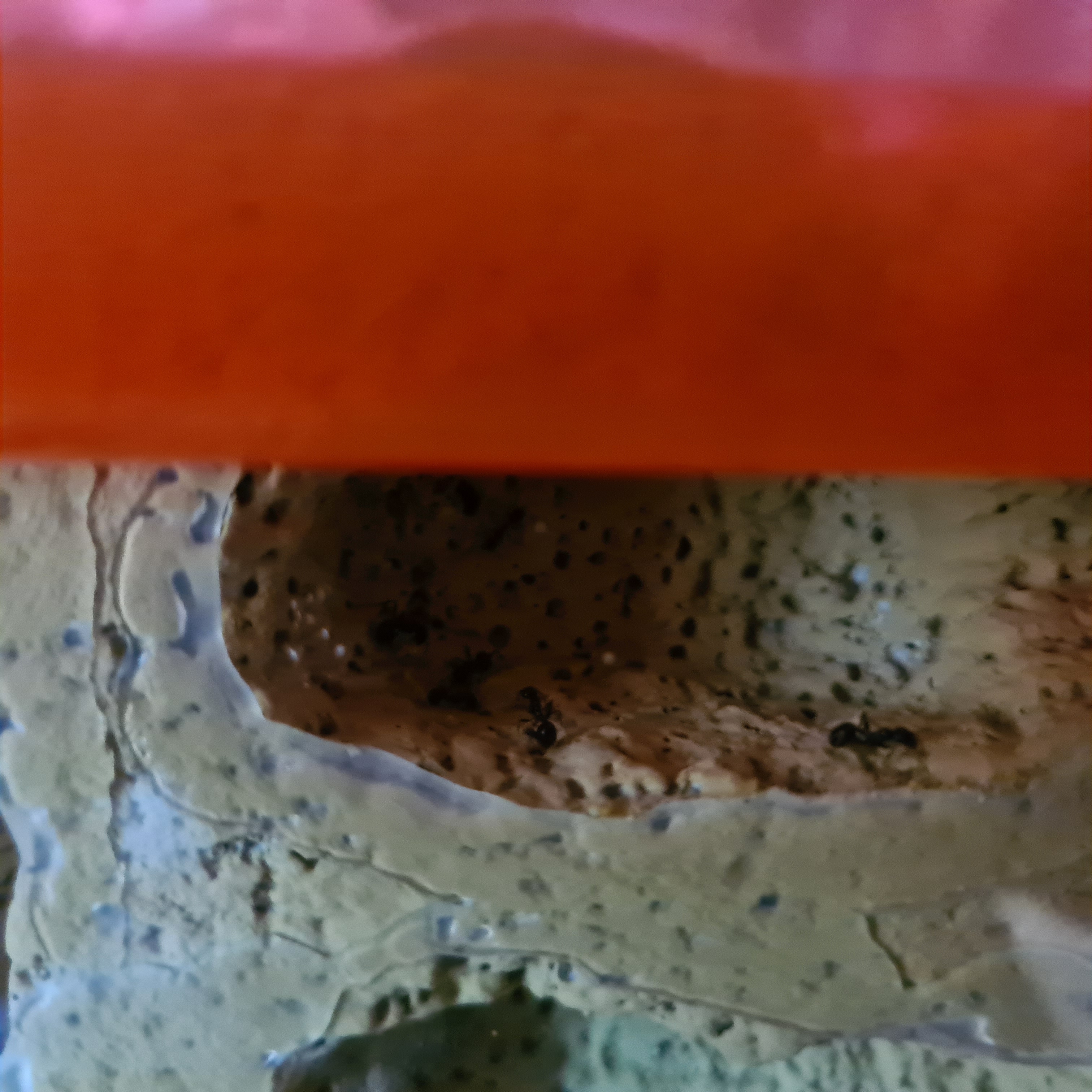 Ich und meine Frau sind totale AnfÀnger was Ameisen betrifft. Wir haben uns Ameisen bei Etzy bestellt mit dazugehörigen Formicarium. Da uns dieses aber zu klein erschien und vor allem nicht sehr schön haben wir kurzerhand eines selbst gebaut. Wir haben ein Ytong Nest eingebaut und Sand in der Arena verteilt.
