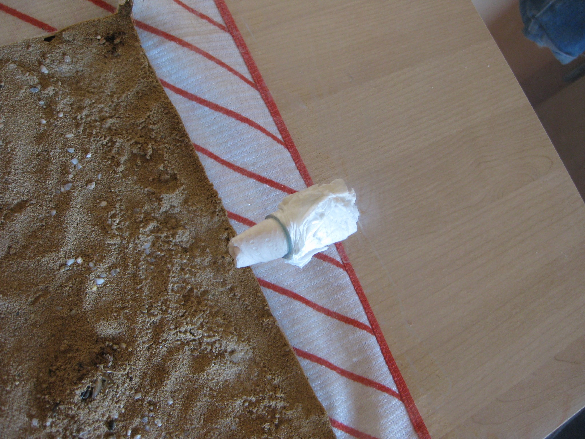 Dan schnitt ich eine Gaze in der Größe von etwa 36x24 cm zurecht.