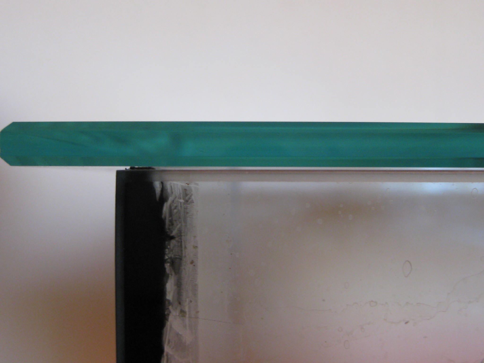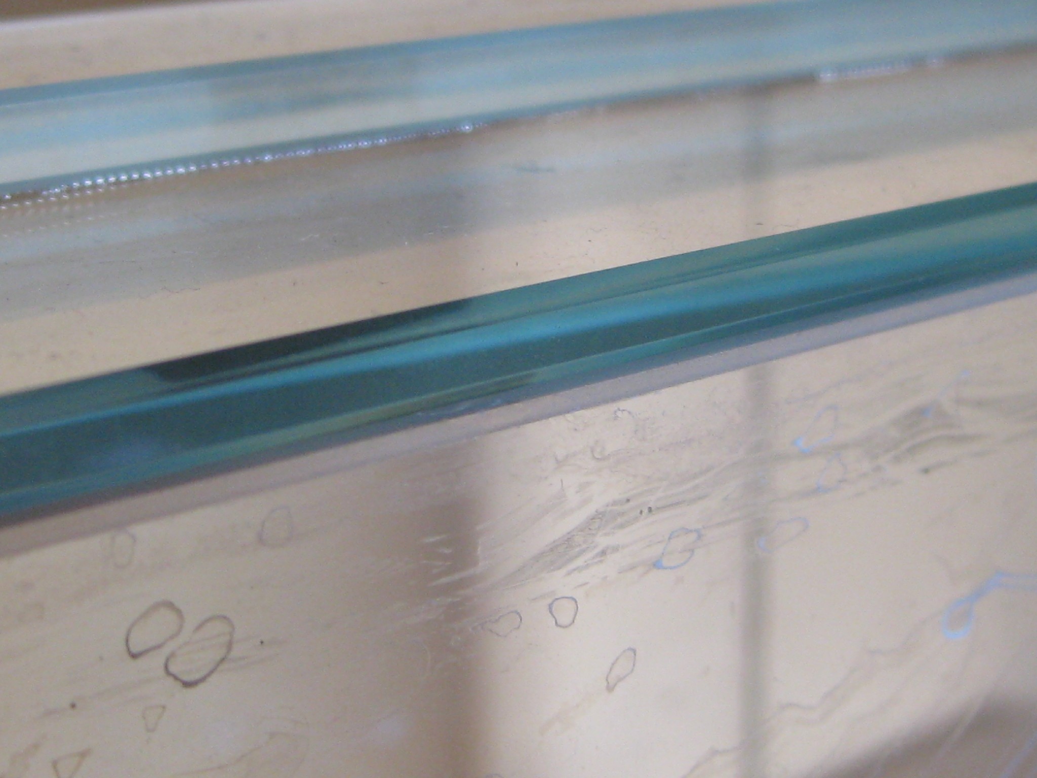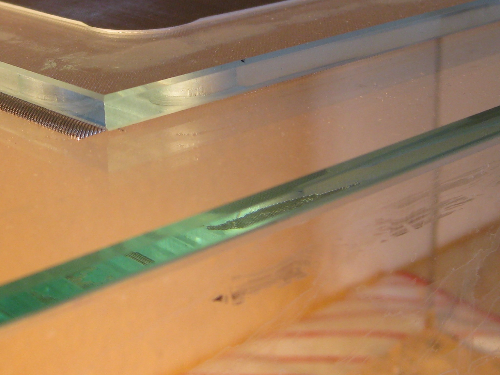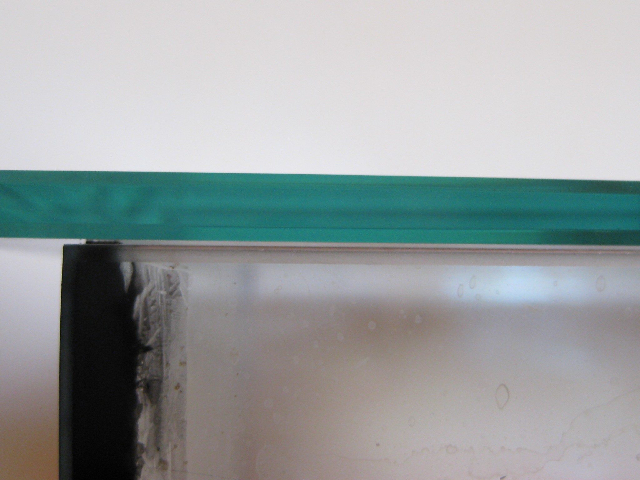 Mit den Schneidemesser und Fingernagel schabte ich das silikon aus den Ecken machte alles sauber und brachte dann Tesastreifen in den Ecken an.