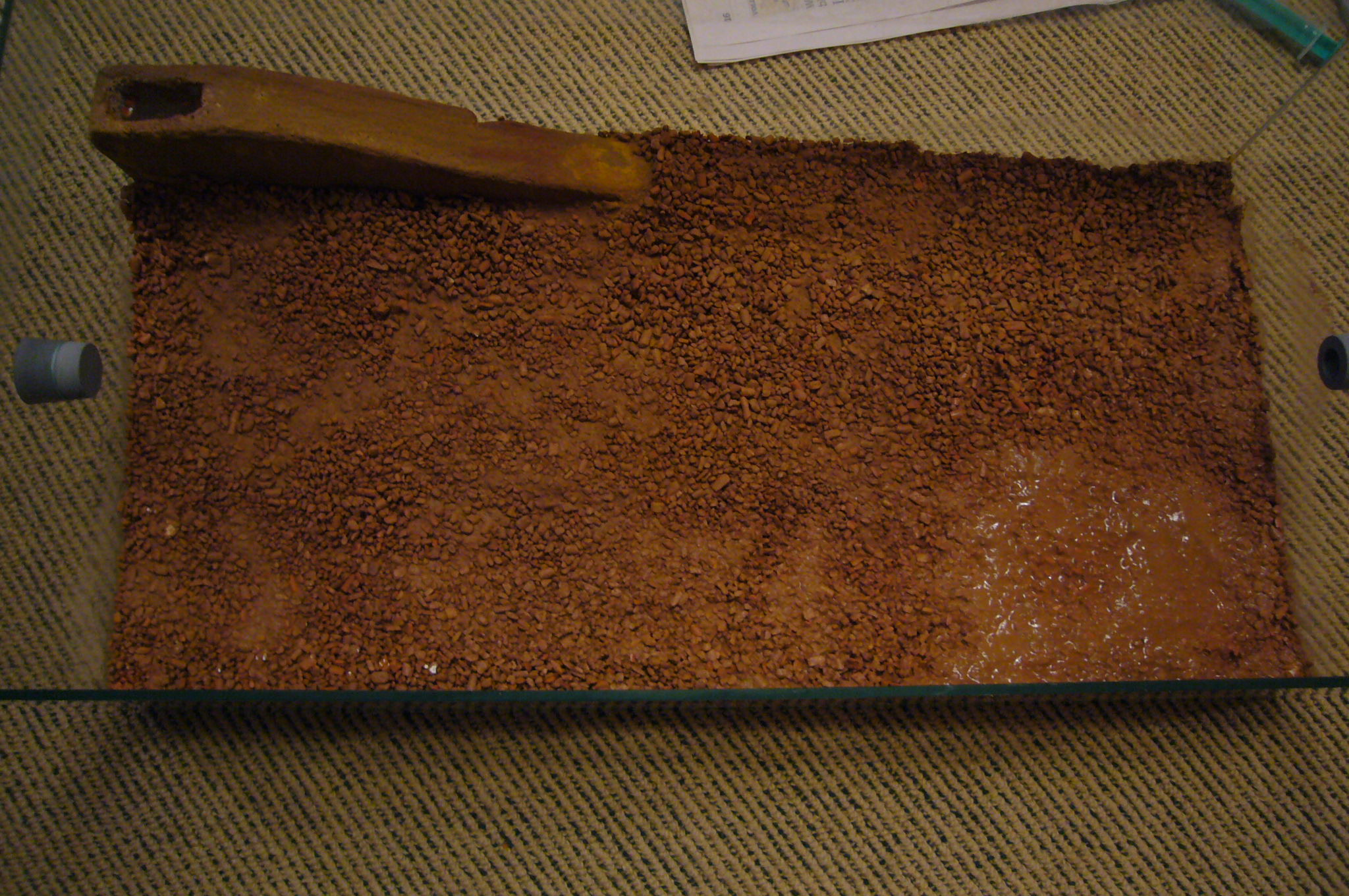 gerade habe ich den Ytong mit Sand/Lehmmischung ausgefĂŒllt und habe ihn in das Formicarium gestellt. Dann habe ich mein Seramis und meine ĂŒbrigen Sand/Lehmmischungen geschnappt, ins Formicarium geschĂŒttet und mit viel Wasser befeuchtet. Leider ging etwas zwischen die Scheibe und den Ytong, sodass ein bisschen Sand/Lehmmischung aus den Kammern gespĂŒlt wurde und sich nun am Boden gesammelt hat. Können die Ameisen das wieder reparieren, also die Mischung, die unten zuviel ist und an der Scheibe klebt, wieder aus dem Nest transportieren? Ich hoffe, ihr könnt mit den Bildern was anfangen und mir Tipps geben ;)