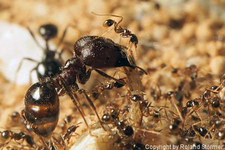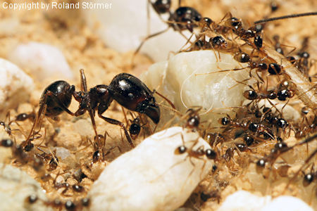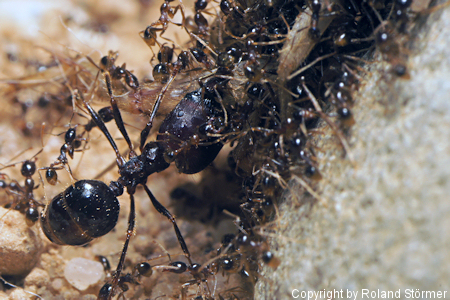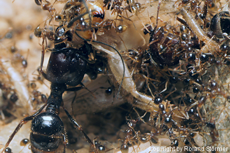 Arbeiterinnen sind schwarz gefÀrbt, Soldatinnen schwarz bis braun.