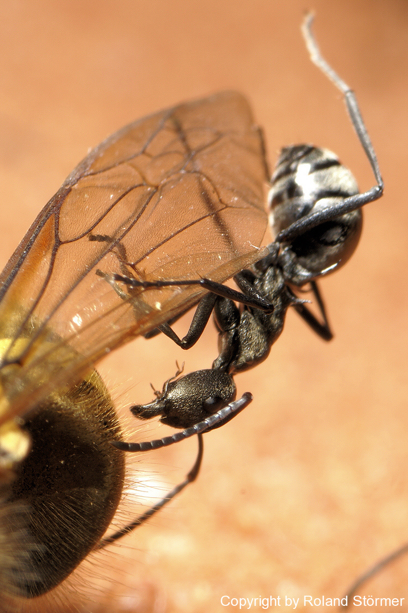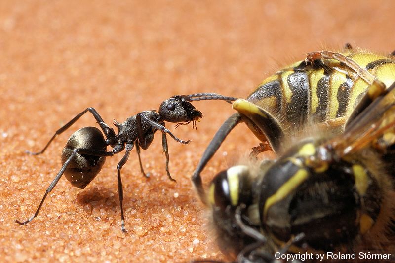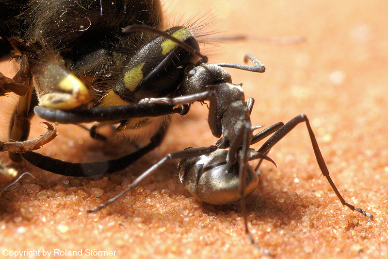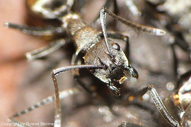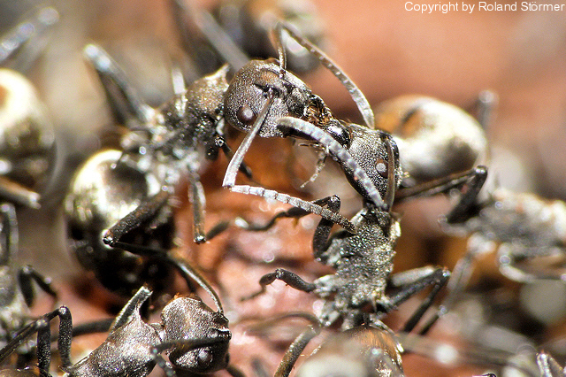 Leider nur mit dem eingebauten Blitz aufgenommen, aber im "Notfall" geht der auch. Die Akkus meiner Sony Alpha 100 und vom Blitz waren leer und ich wollte die Bilder der Polyrhachis dives unbedingt festhalten. Also nahm ich die Panasonic Lumix in die Hand.