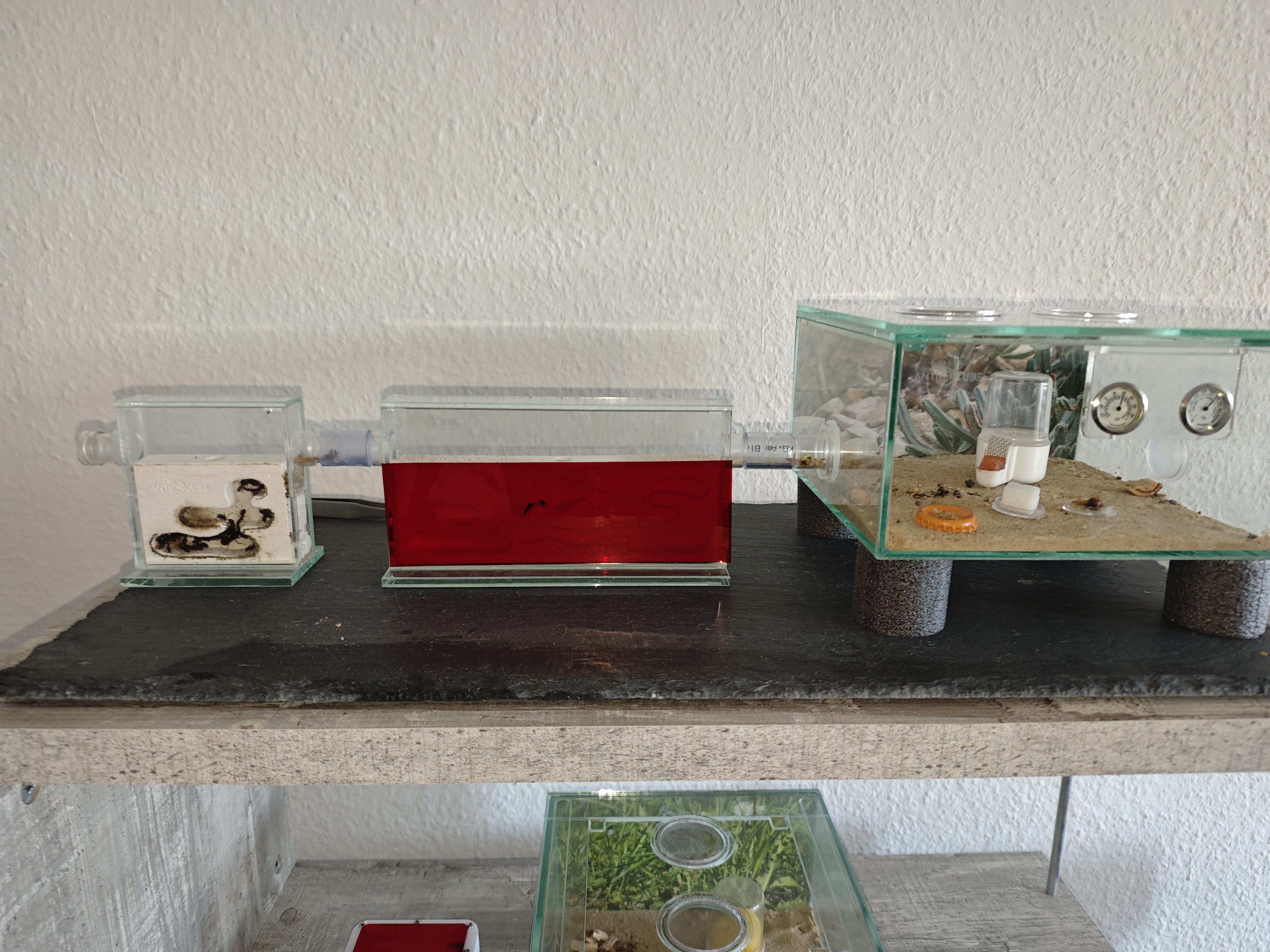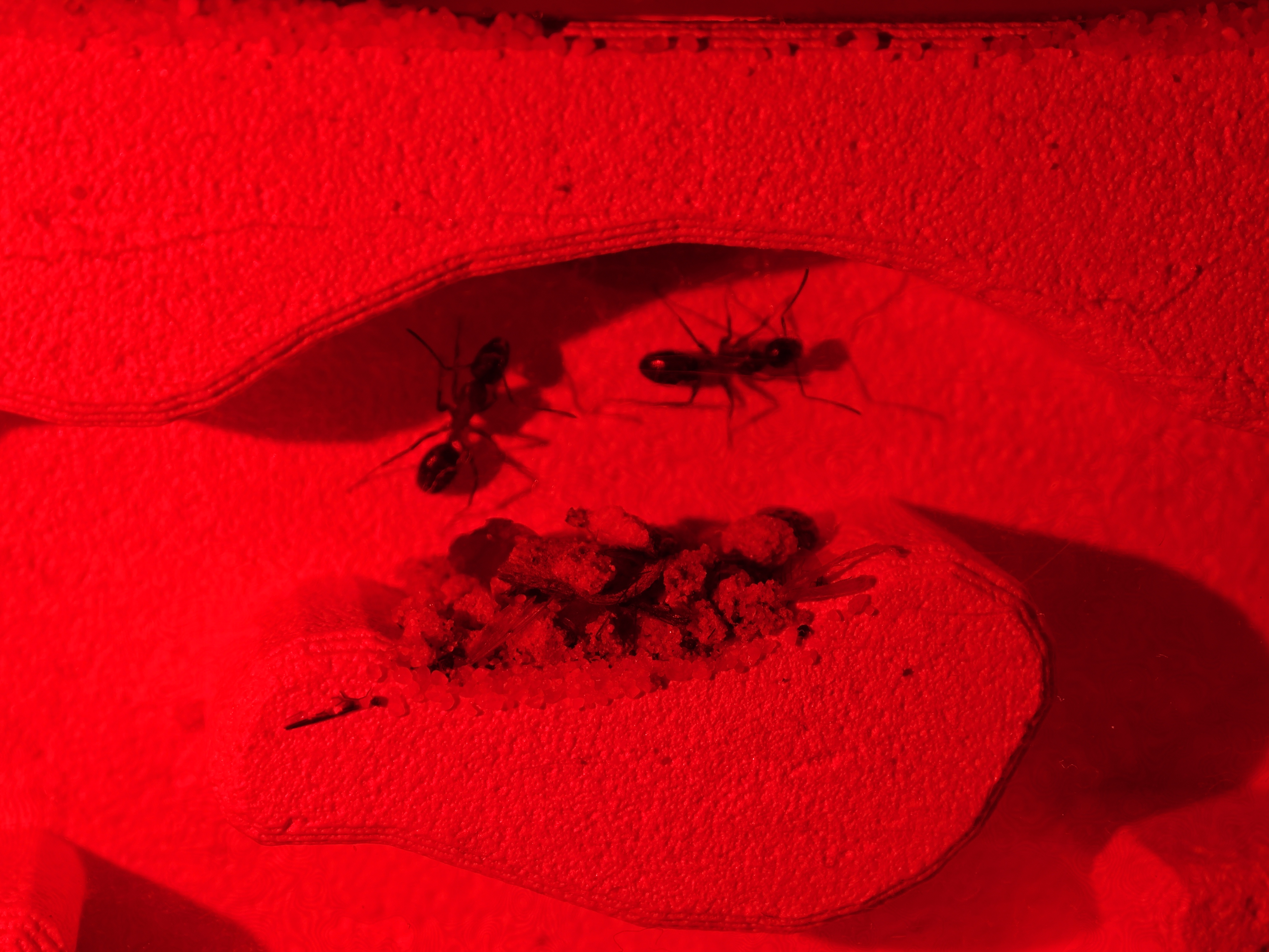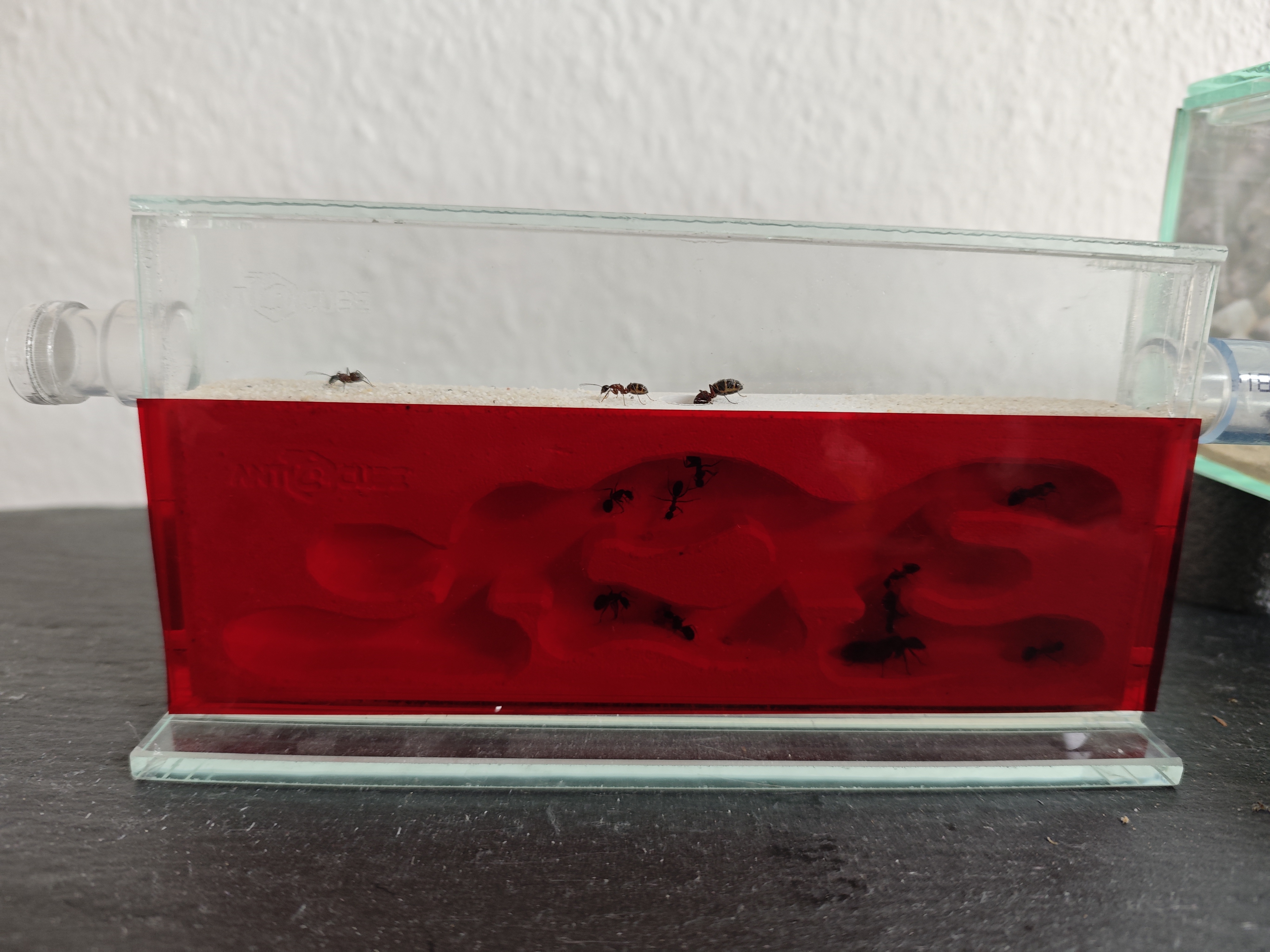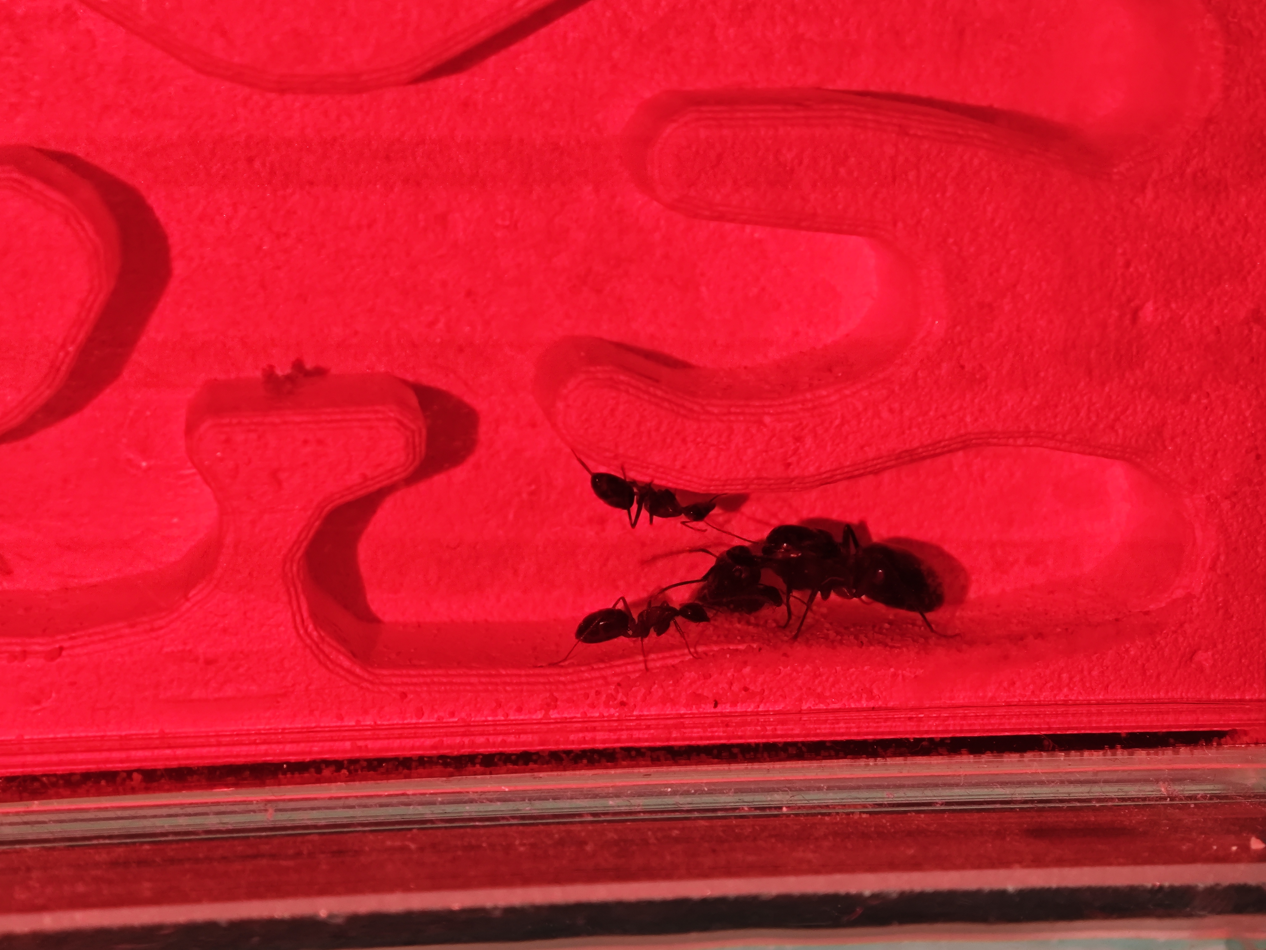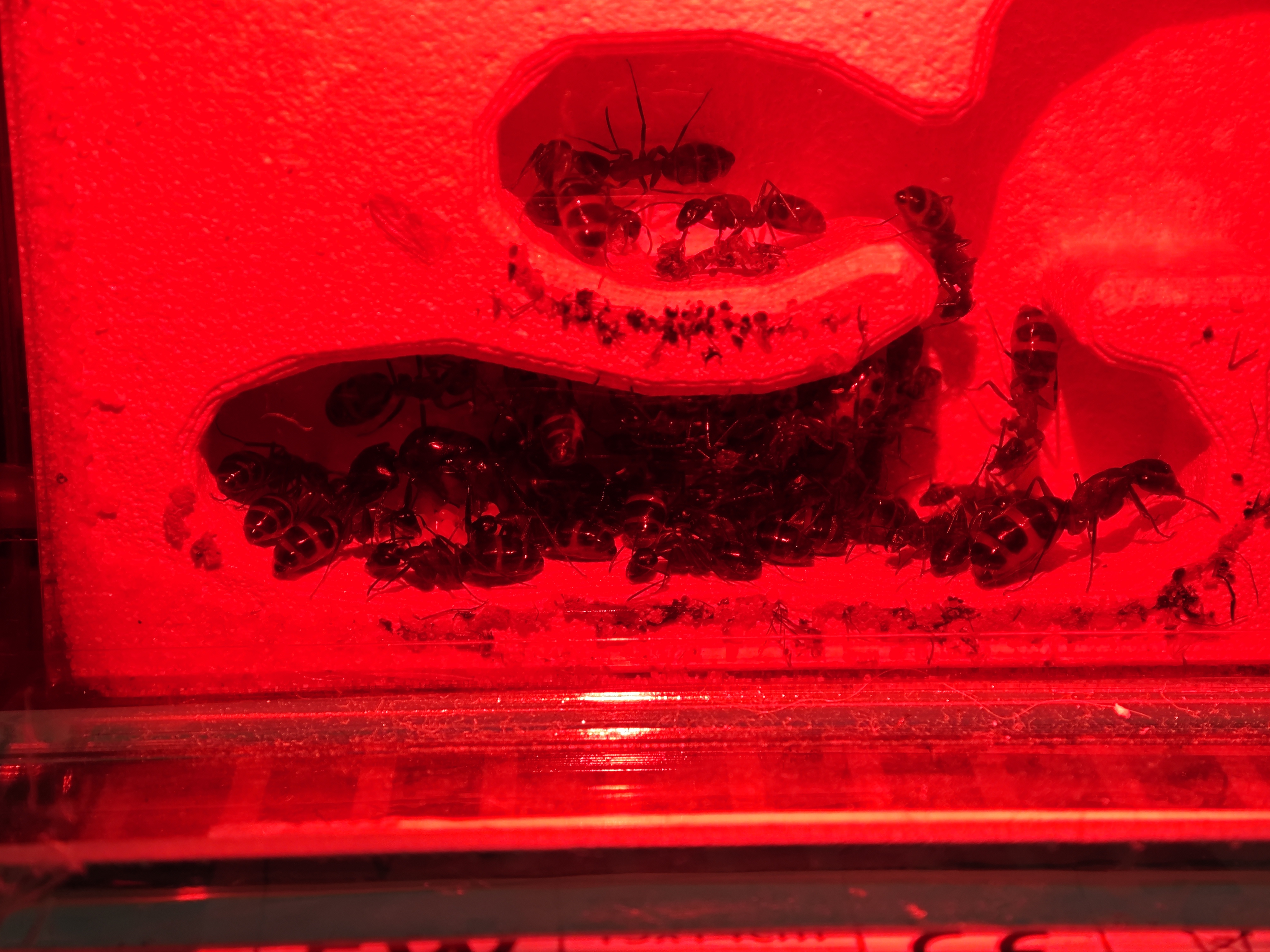 Eine erste Majore ist aufgetaucht. Sie ist fast doppelt so groĂź wie eine normale Arbeiterin. Leider im Nest nicht richtig erkennbar.