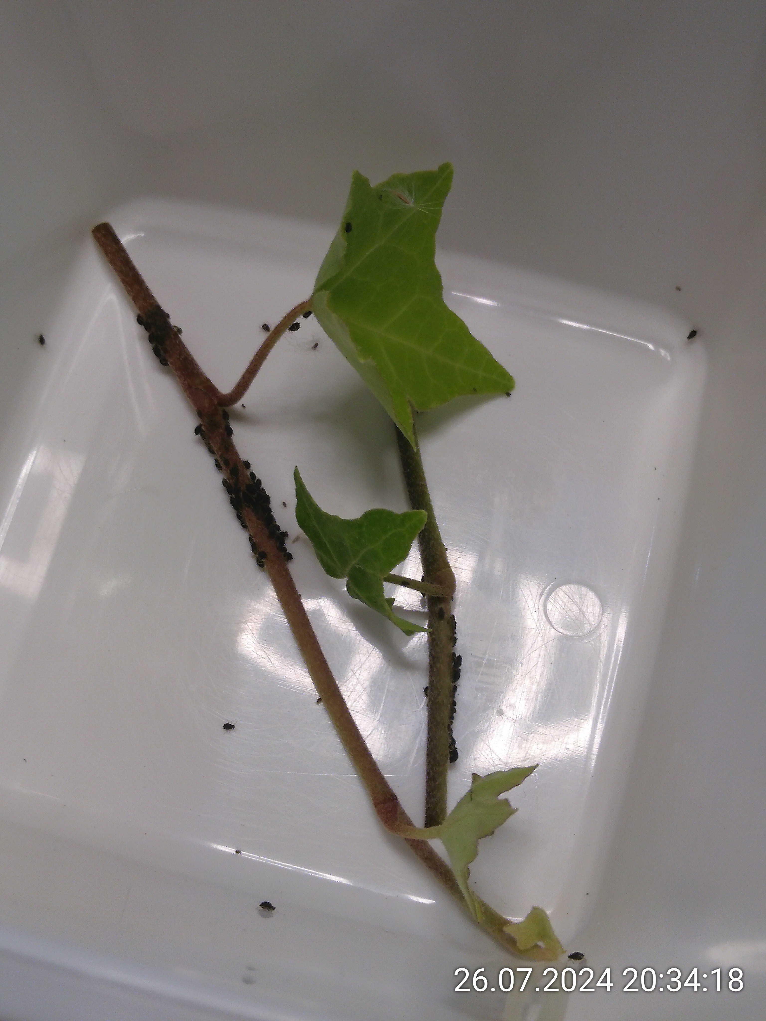 Asseln stehen voll auf die Blätter von Radieschen. Dabei fällt mir ein: Fressen die wohl auch Läuse? Nachdem ich gelesen habe, dass sich die Schnappis auch gerne um Läuse kümmern, habe ich direkt nach welchen gesucht und bin fündig geworden. Efeu habe ich ja im Wald extra dafür angepflanzt. Und er hat mittlerweile viele frische Triebe.