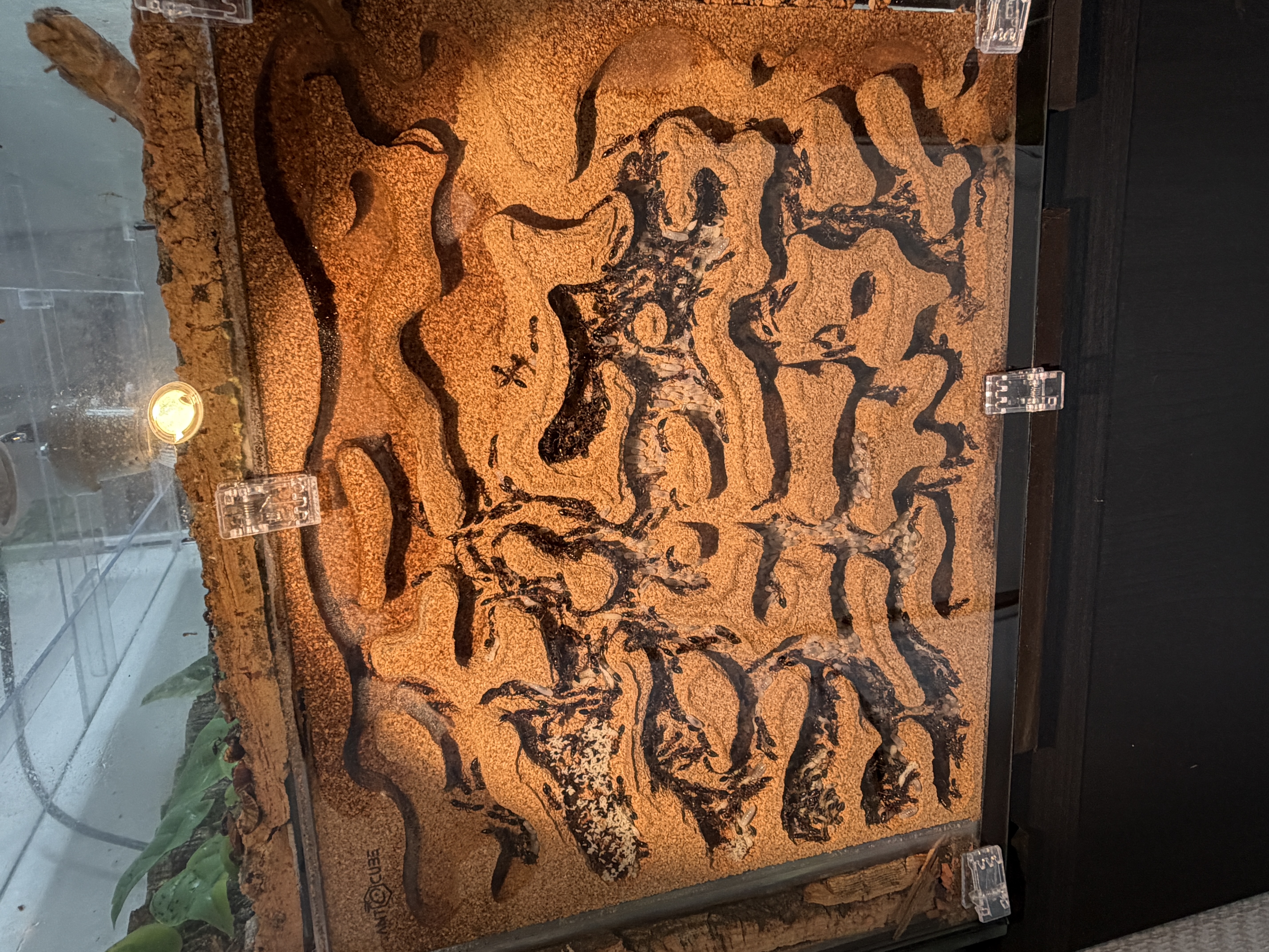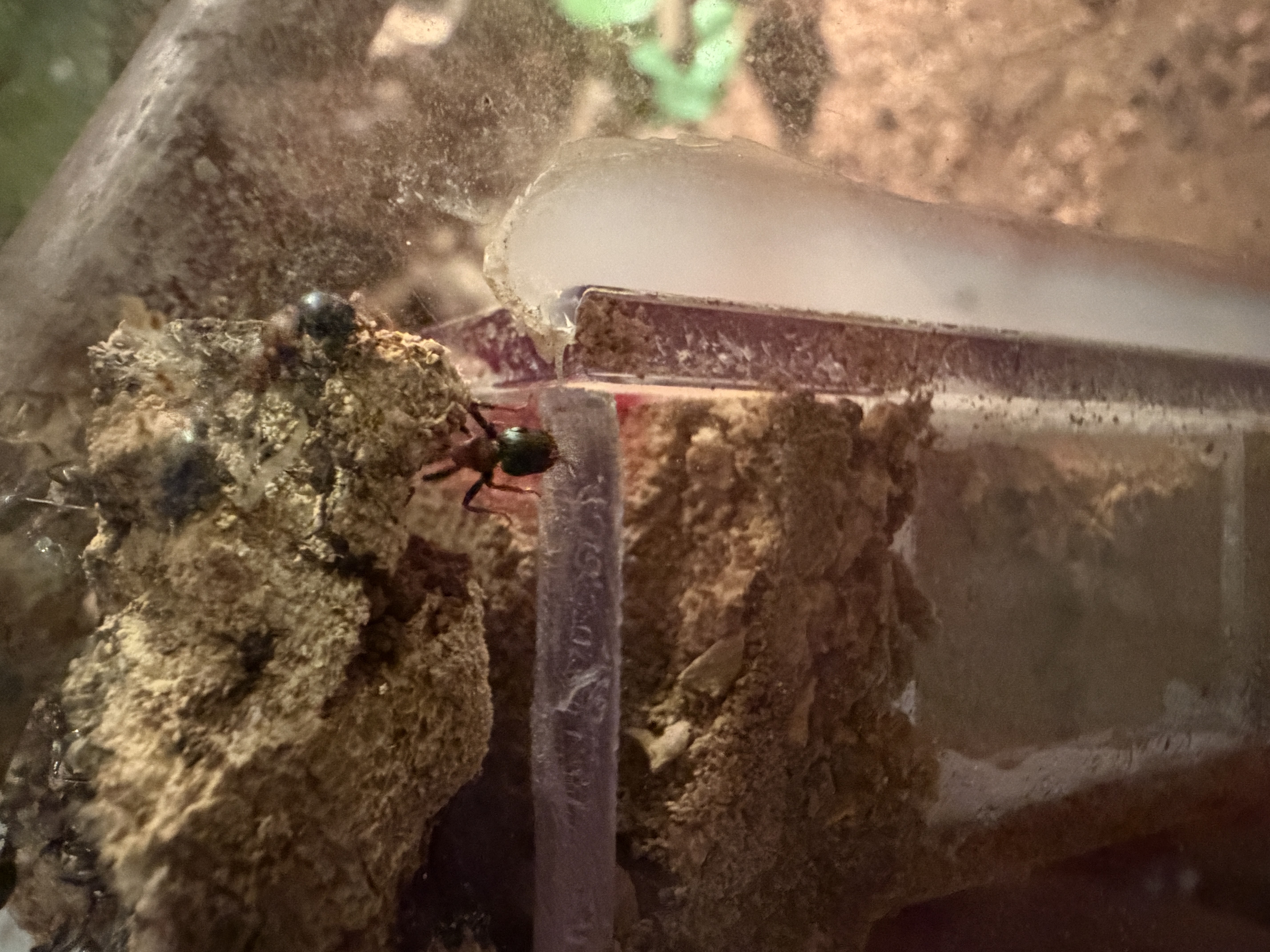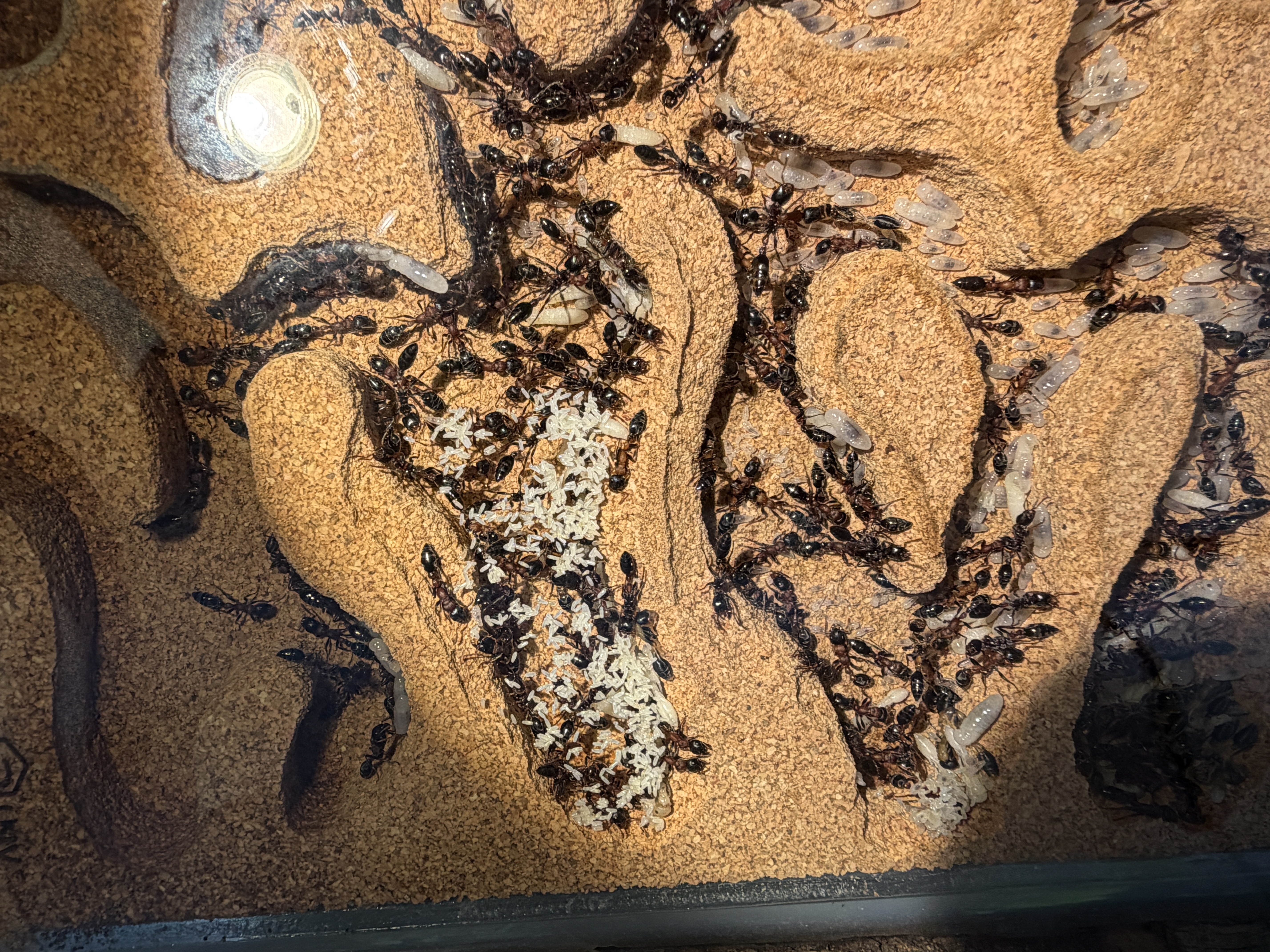 Das zweite Korknest, was zur Arena zeigt, ist vom Korkgrandulat fast vollstÀndig befreit. Dort halten sich vereinzelt ein paar Ameisen auf.