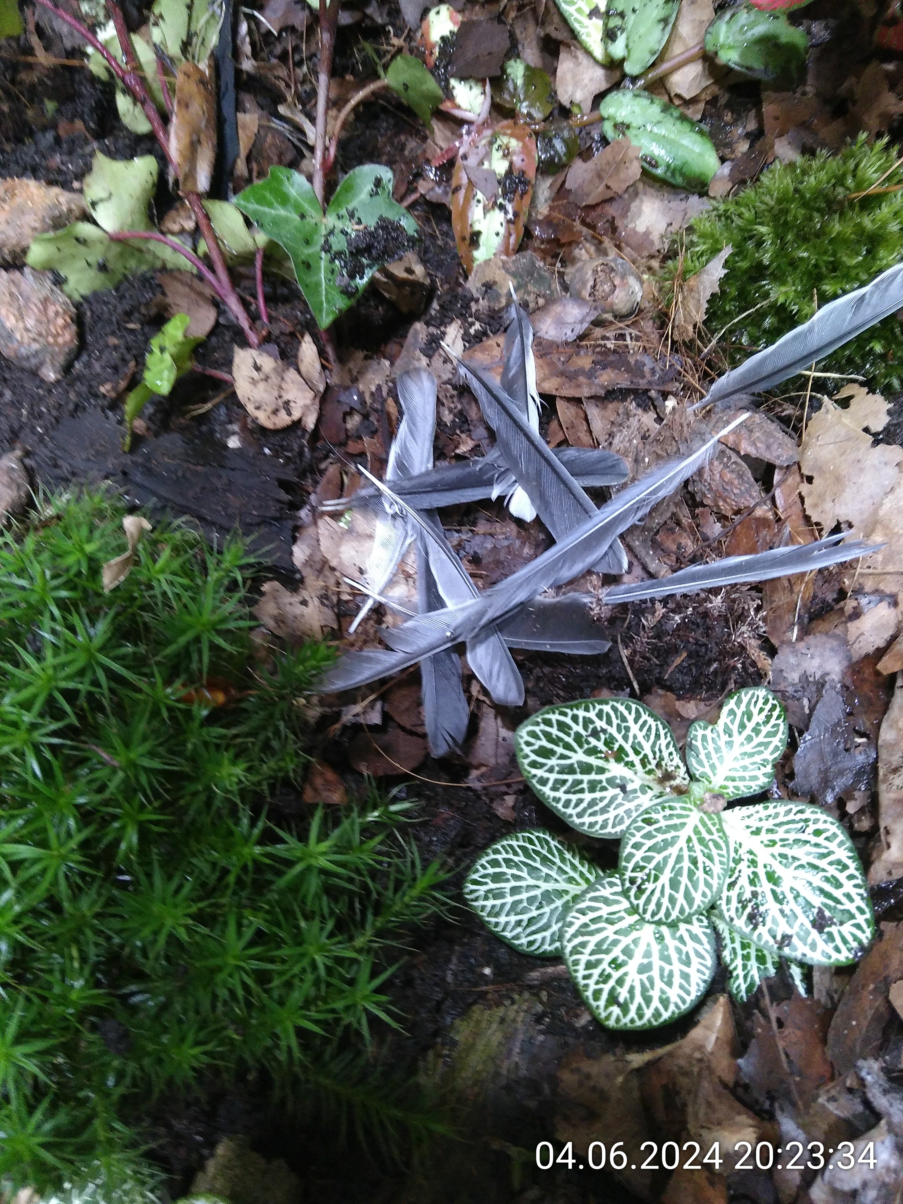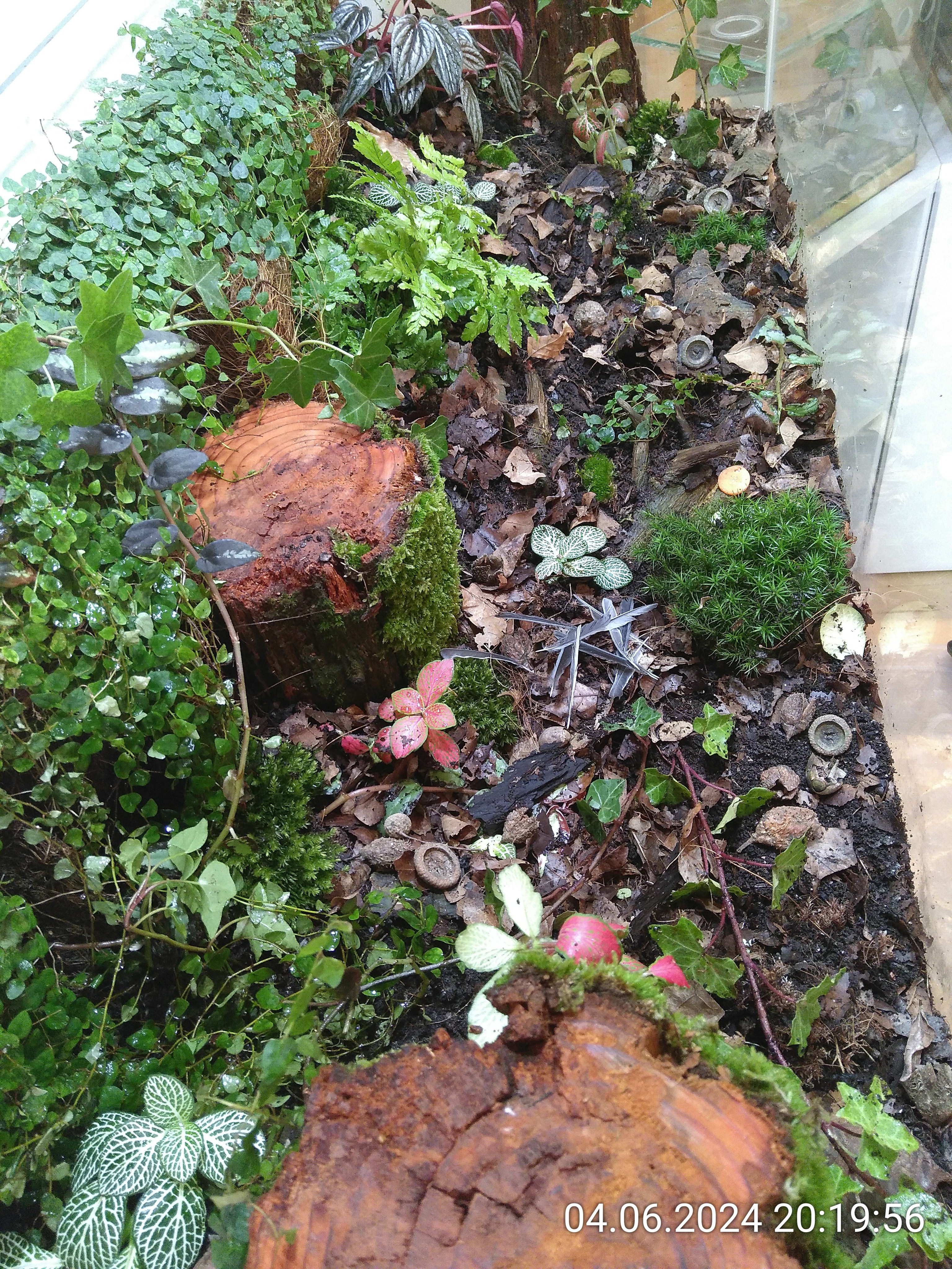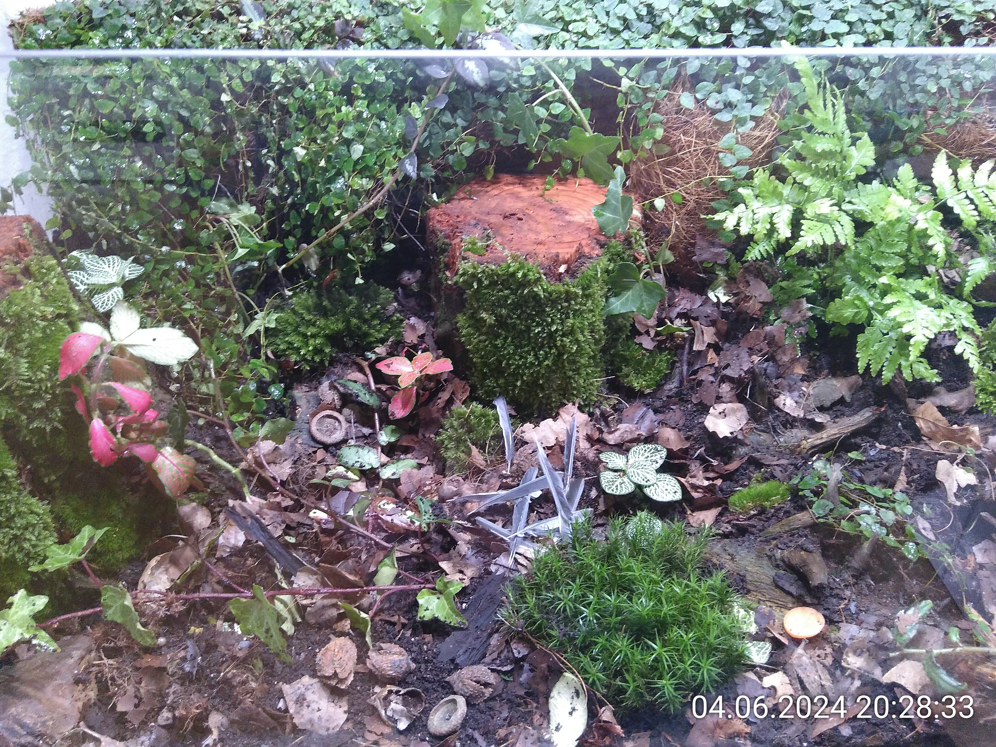 Schon besser, sieht aber immer noch nicht nach Waldboden aus. Also habe ich noch ein paar Holzstückchen und Baumrinde verteilt.