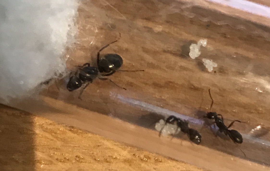 Gyne und 3 Arbeiterinnen (man sieht leider auf dem Foto nur 2) und ein paar wenige frisch gelegte Eier. Diese hab ich dann alle eingesammelt und Sie sitzen nun in einem Reagenzglas. Mein Frage: um welche Art handelt es sich bzw gibt es irgendwelche Sachen auf die ich achten muss?