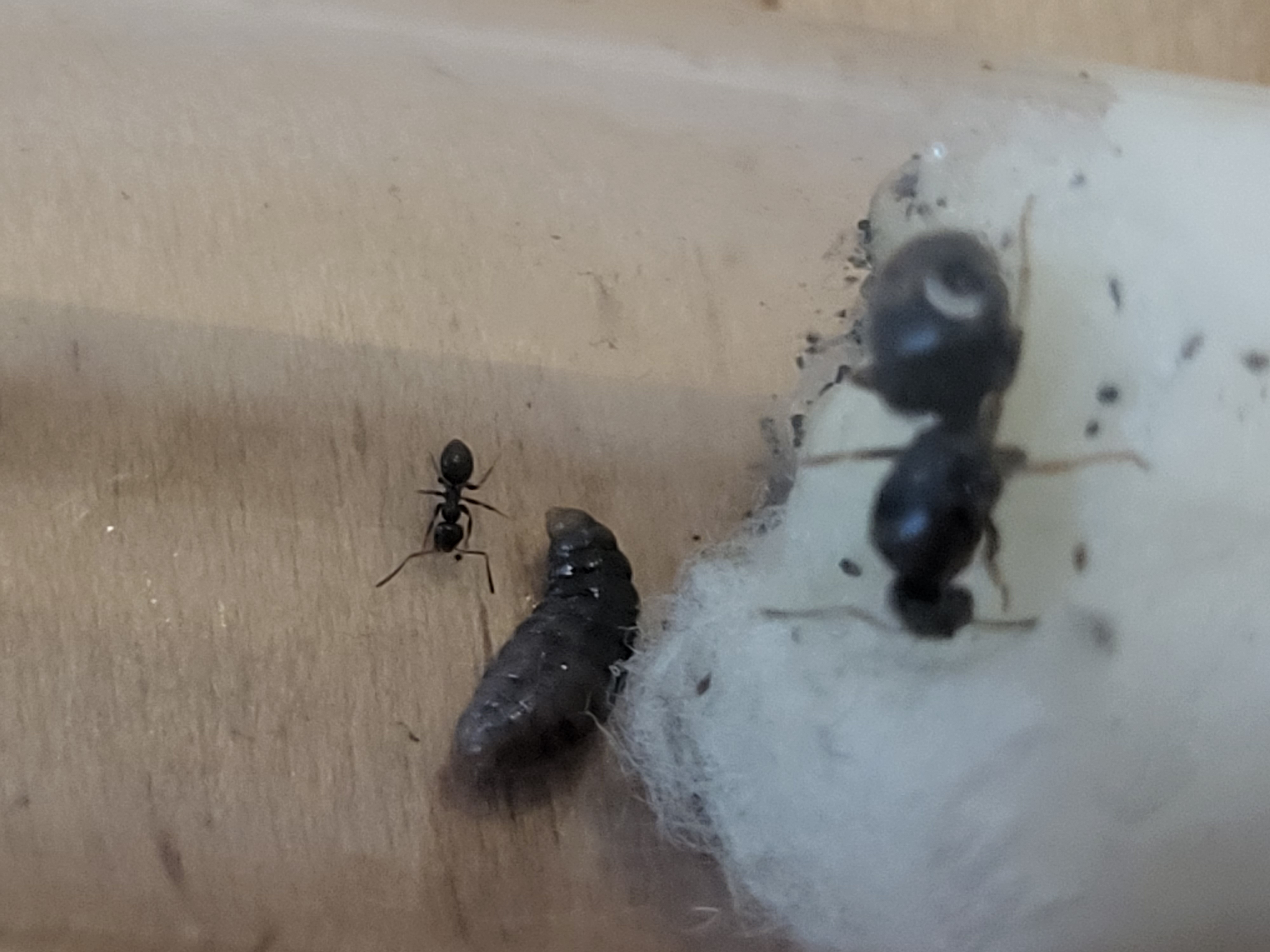 eine unserer Lasius hat eine Larve, die um ein vielfaches größer ist als die anderen bzw. als die für Lasius niger üblichen Larven.