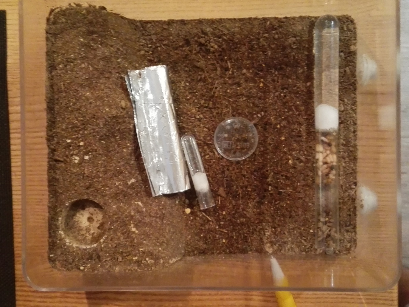 Derzeit bewohnt die kleine Kolonie eine Godmorgon-Box. Als Futter haben sie Invertzucker im kleinen RG und Fruchtfliegen im SchÀlchen.
