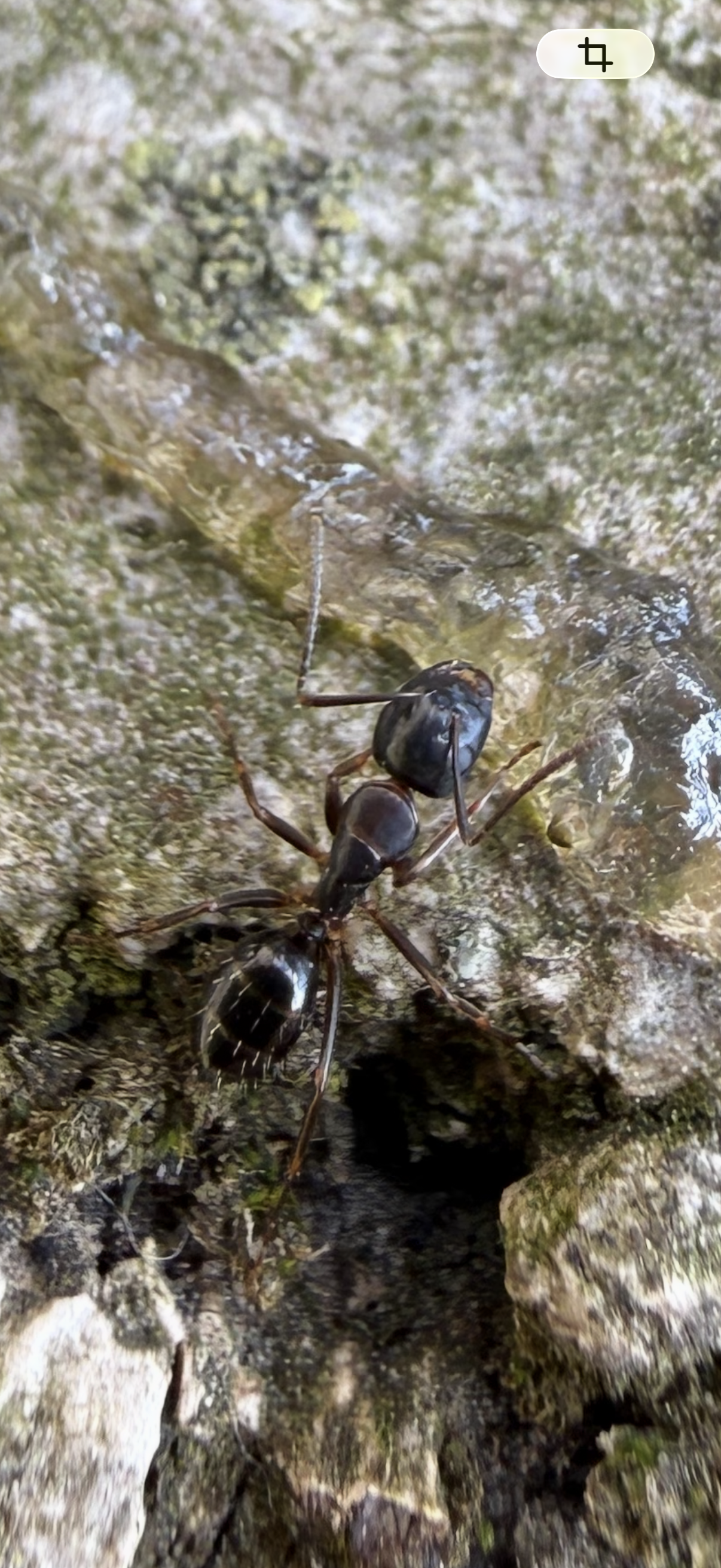 Ich habe gestern auf unserem freistehenden Walnussbaum folgende etwa 1 cm große (geschätzt - nicht gemessen) Ameise gesehen. Siehe Fotos.