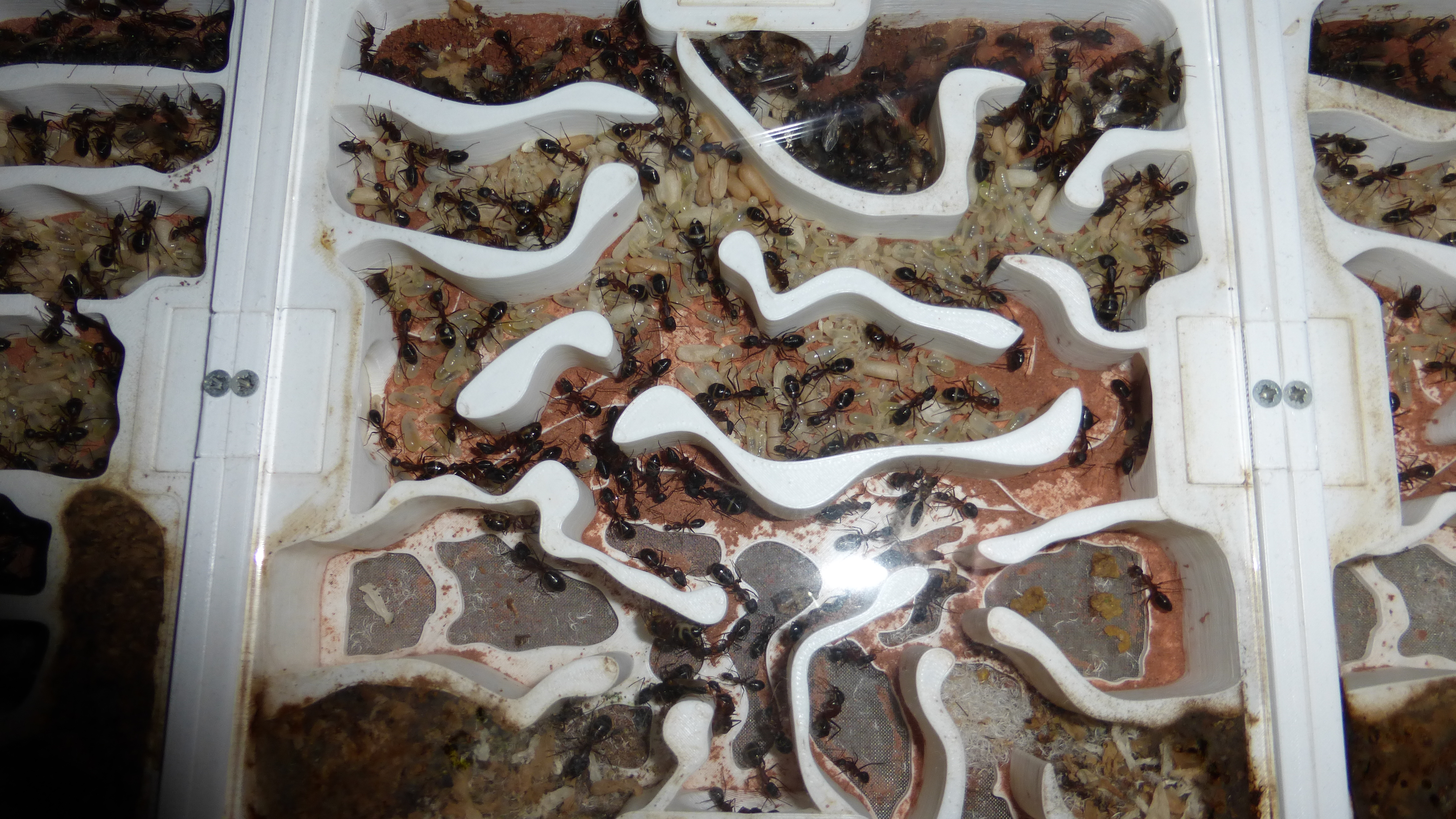 Larven sind zwar noch im Wintermodus, aber die Arbeiterinnen verwerten eine Maus jetzt innerhalb von 2-3 Tagen.