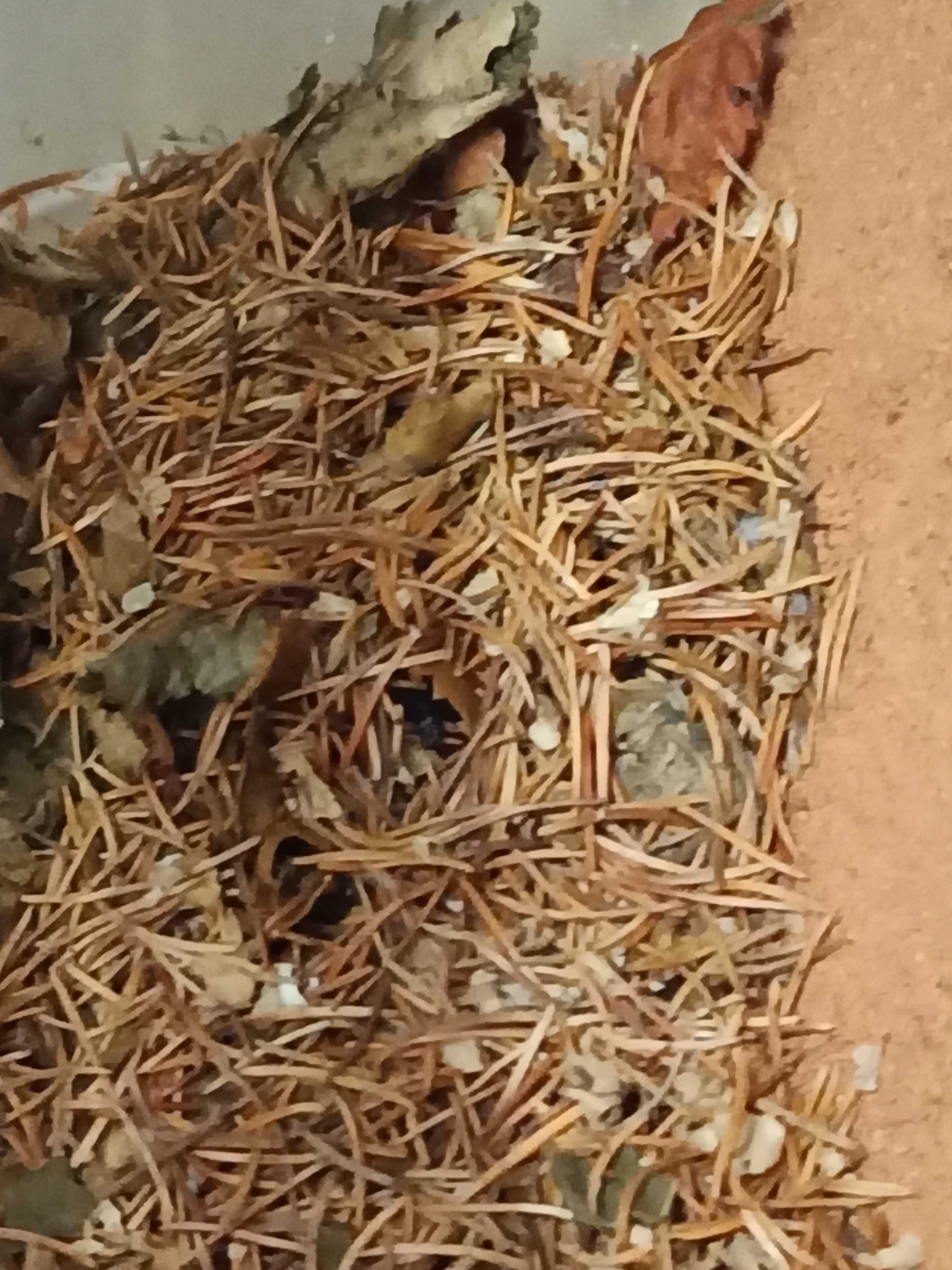 Habe Grade etwas gesehen was mich etwas verwundert, ich habe ja ein wenig Nadeln und zerkleinerte BlĂ€tter mit rein getan damit sie sich wohler fĂŒhlen und dann entdecke ich heute das :