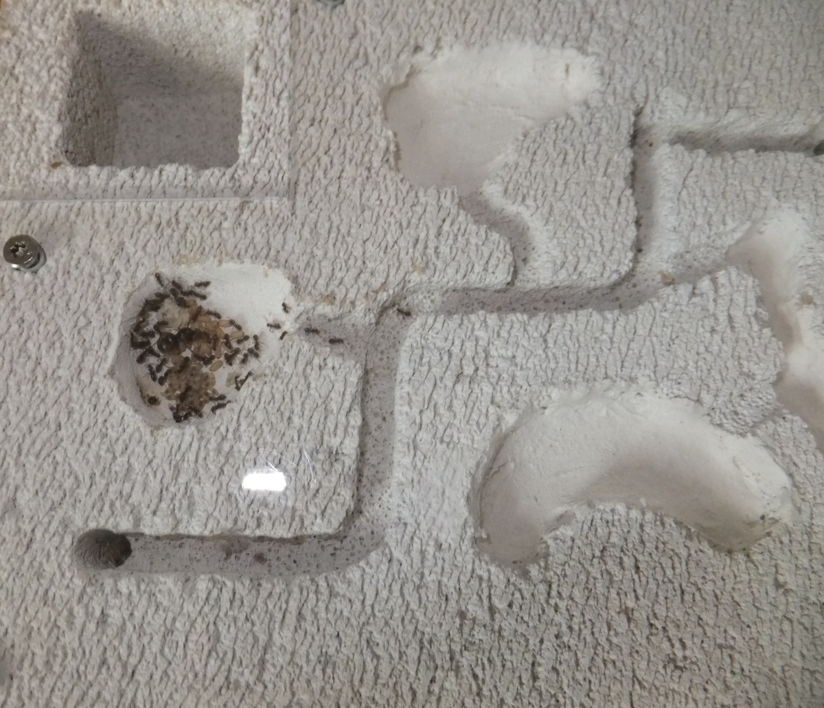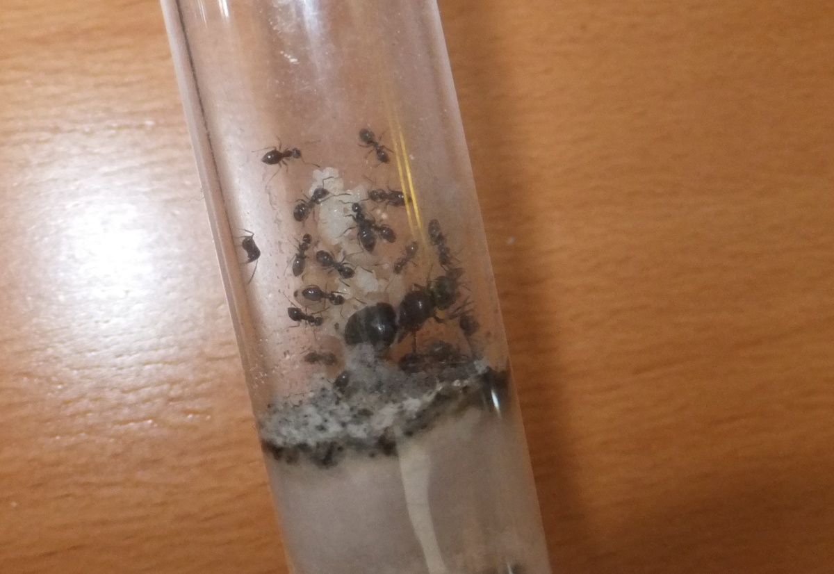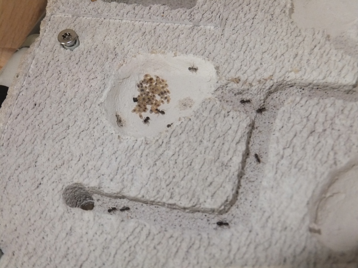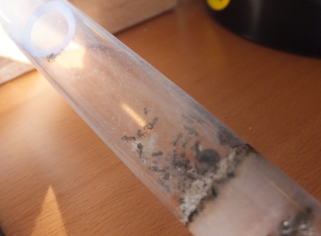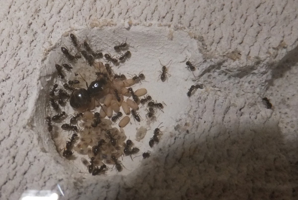 Zusammen mit ein paar Arbeiterinnen, den Eiern, und ab und zu werden die