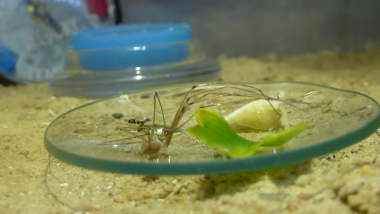 Der Weberknecht wurde erst am Meisten bearbeitet, danach wurde aber auch die Banane super gut angenommen. Zuckerwasser und Honig wurden gleicht stark verzerrt... aber jetzt kommt das Interessante: Die Petersilie wurde teilweise zertrennt und ins RG getragen (?) Weiß jemand wieso?