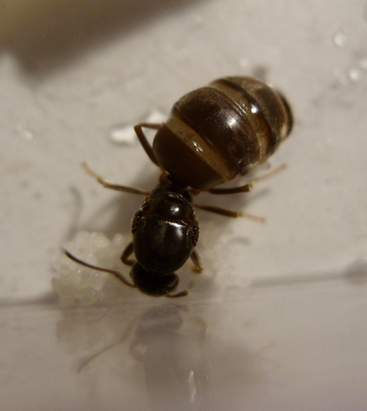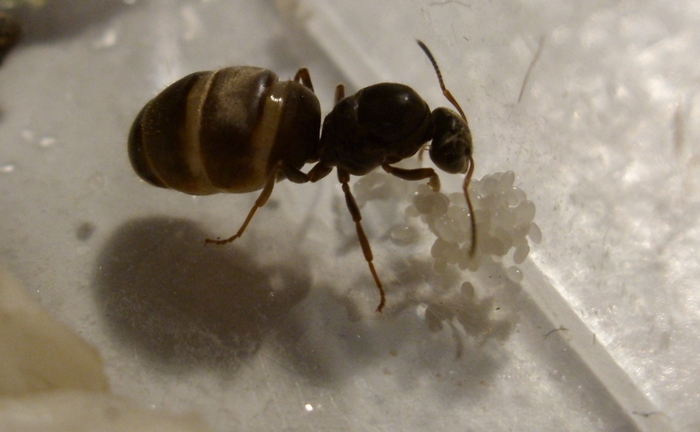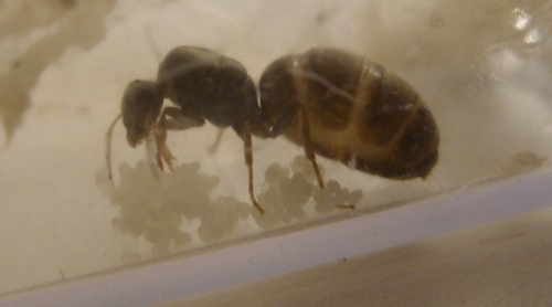Ich weiß langsam wirklich nicht was ich mit der machen soll... Sie hat immernoch keine Arbeiter und wird mit sehr großer Wahrscheinlichkeit dieses Jahr auch keine mehr bekommen. Viele ihrer Eier hat sie in der "Schimmelhöhle" zurückgelassen und auch nachdem ich ihr die rübergesetzt hatte (in die Ecke in der sie dann saß) hat sie diese nicht mehr angerührt.