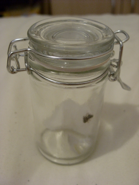Ahja, da ich kein Reagenzglas bekommen hab, hab ich ein kleines Einmachglas gekauft. Durchmesser ist etwa so wie der einer Klopapierrolle. >_>