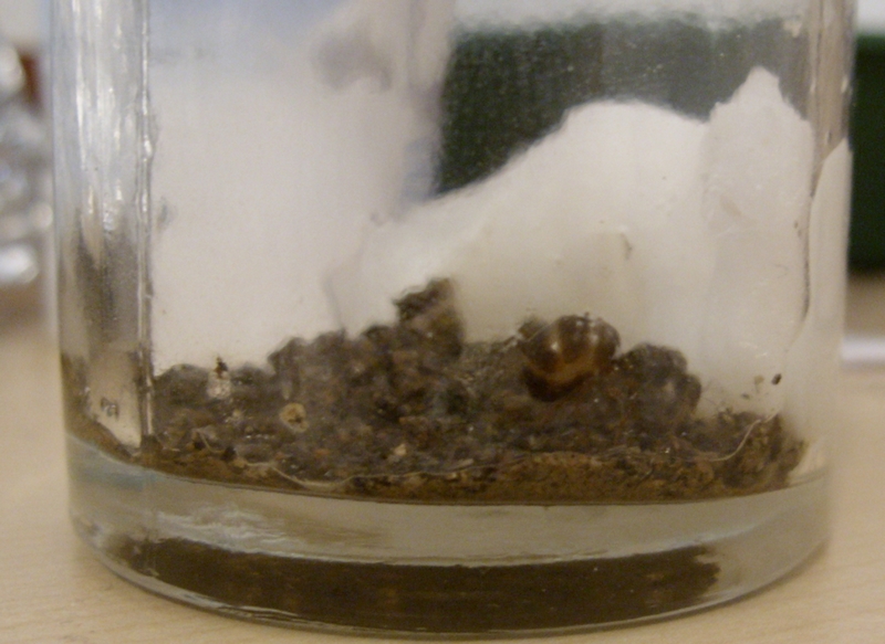 Einziges Problem: Sie geht nicht auf den Boden des neuen Gefäßes sondern sitzt auf der Befeuchtungswatte. ._.