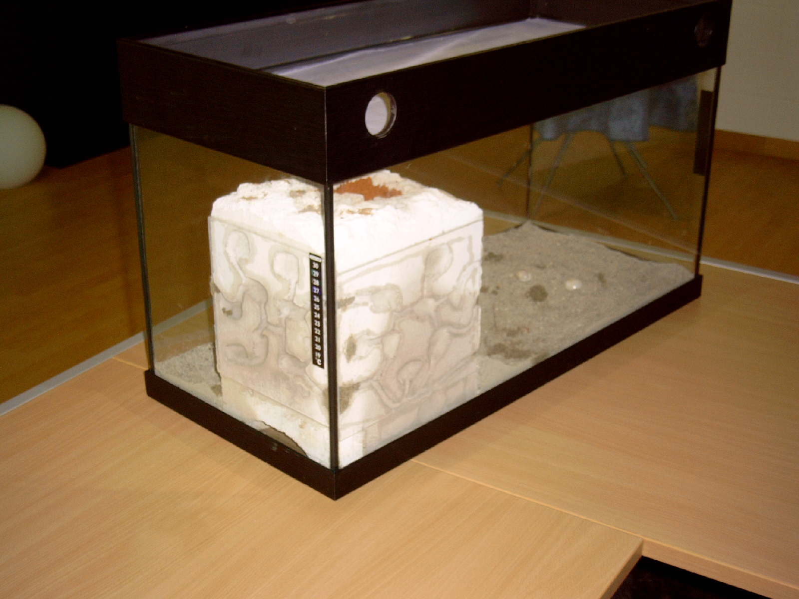 Nest und Boden im Aquarium eingebaut und Deckel ausbruchssicher gemacht.
