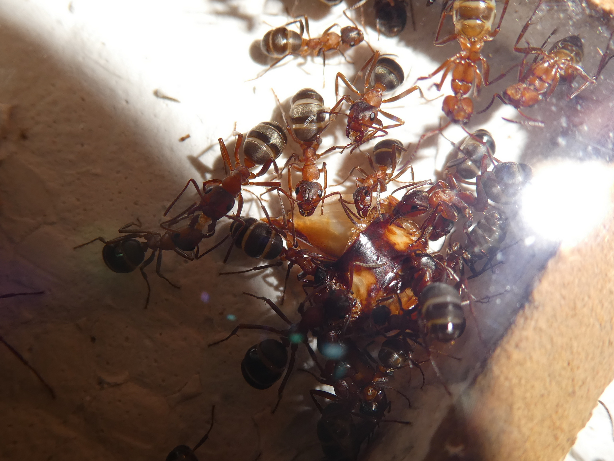 Interessante Sache, Raptiformica und Serviformica im selben Schrank zu haben - sie gehören zur selben Gattung aber könnten kaum unterschiedlicher sein. Schlagt euch ĂŒbrigens jegliche Raubzug-Gedanken aus dem Kopf... :lol: