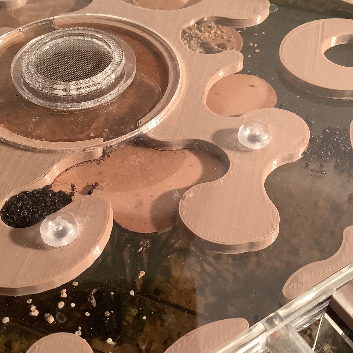 Heute mal wieder ein Bild der Gesamtanlage fĂŒr meine Ameisen ... wie schon gehabt rechts oben das Ytongnest der Pogonomyrmex rugosus mit den beiden Arenen.