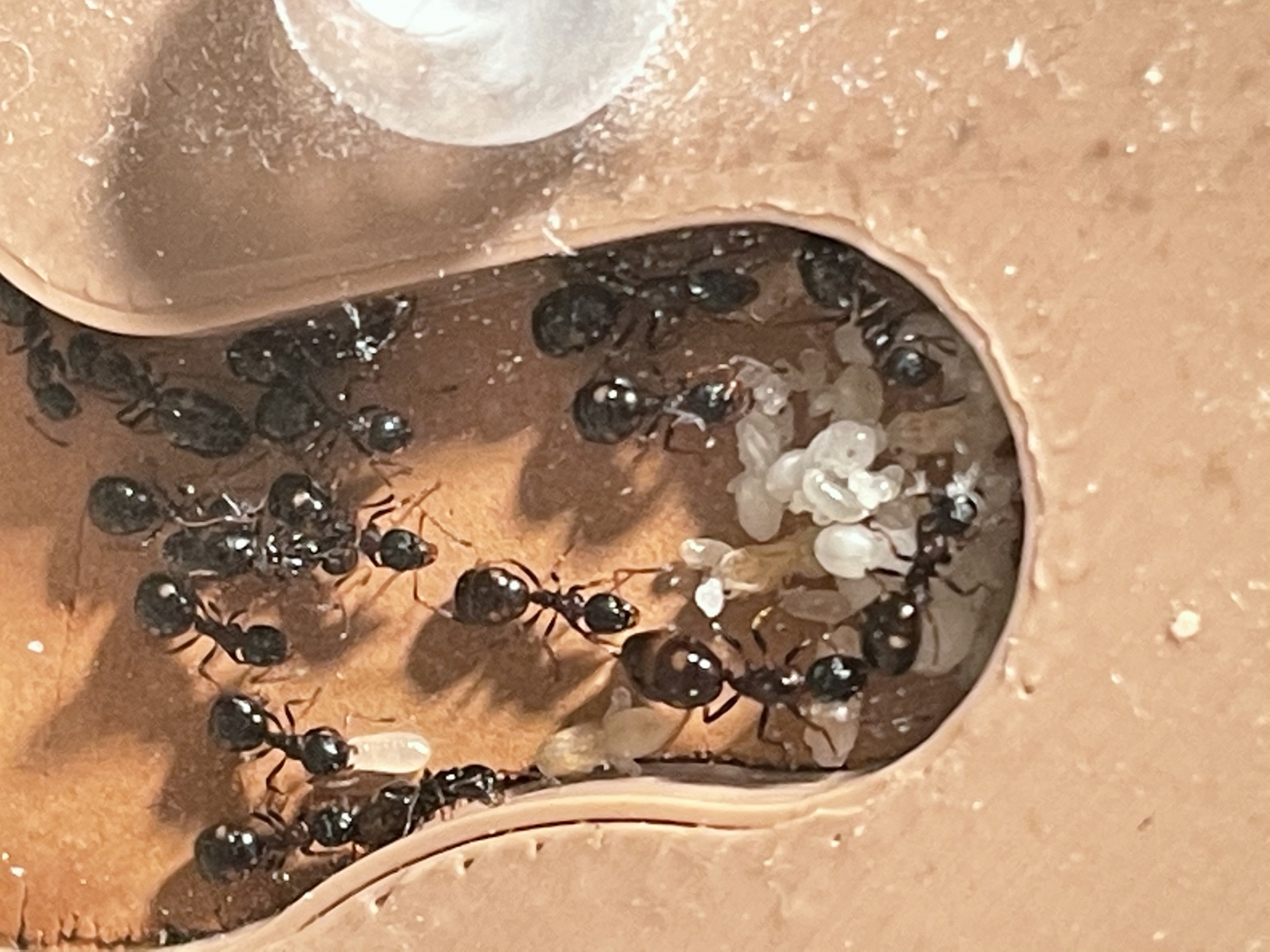 Ganz links habe ich eben die neue Arena fĂŒr meine Dolichoderus quadripunctatus aufgebaut und diese mĂŒssen jetzt ĂŒber einen fast 1,2 Meter langen Schlauch in den Untergrund zu ihrem Nest. Den Schlauch erkunden sie schon und die ersten sind fast bis zur neuen Arena vorgedrungen. Denn ich hole heute meine Dolis aus der Winterruhe (das hab ich letztes Jahr auch so frĂŒh getan und sie sind sofort wieder aktiv) ... und wenn sie es dann nachher geschafft haben, dann gibt’s auf der Wurzel ganz was leckeres SĂŒĂŸes ... đŸ€«đŸ˜‹