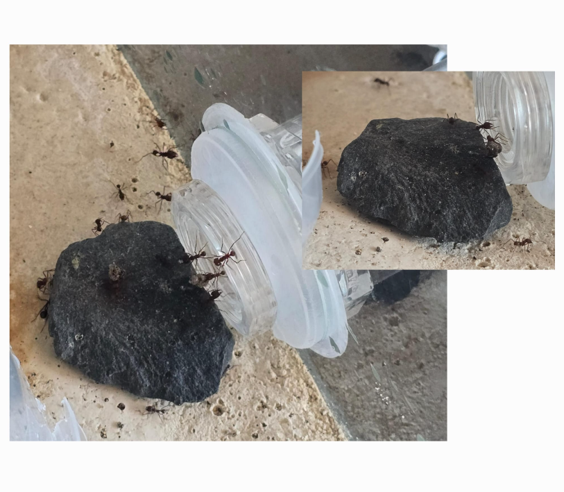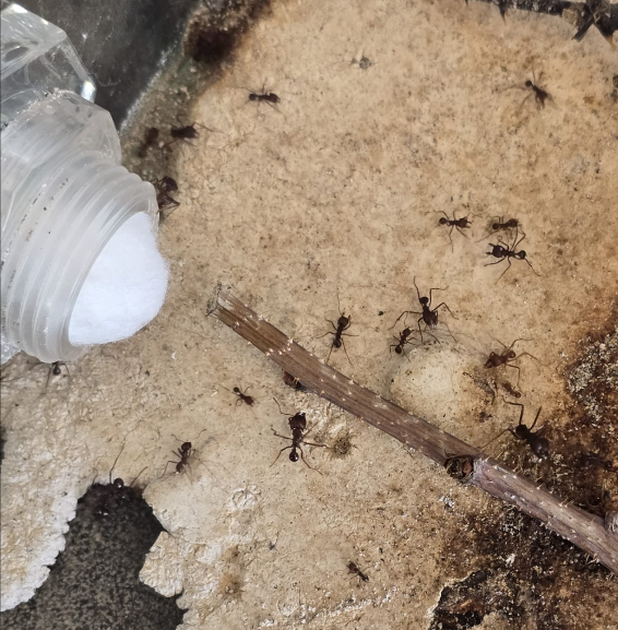 Arbeiterinnen im alten Pilzbecken (20x20x20cm Antcube+Rahmen+Abdeckung)