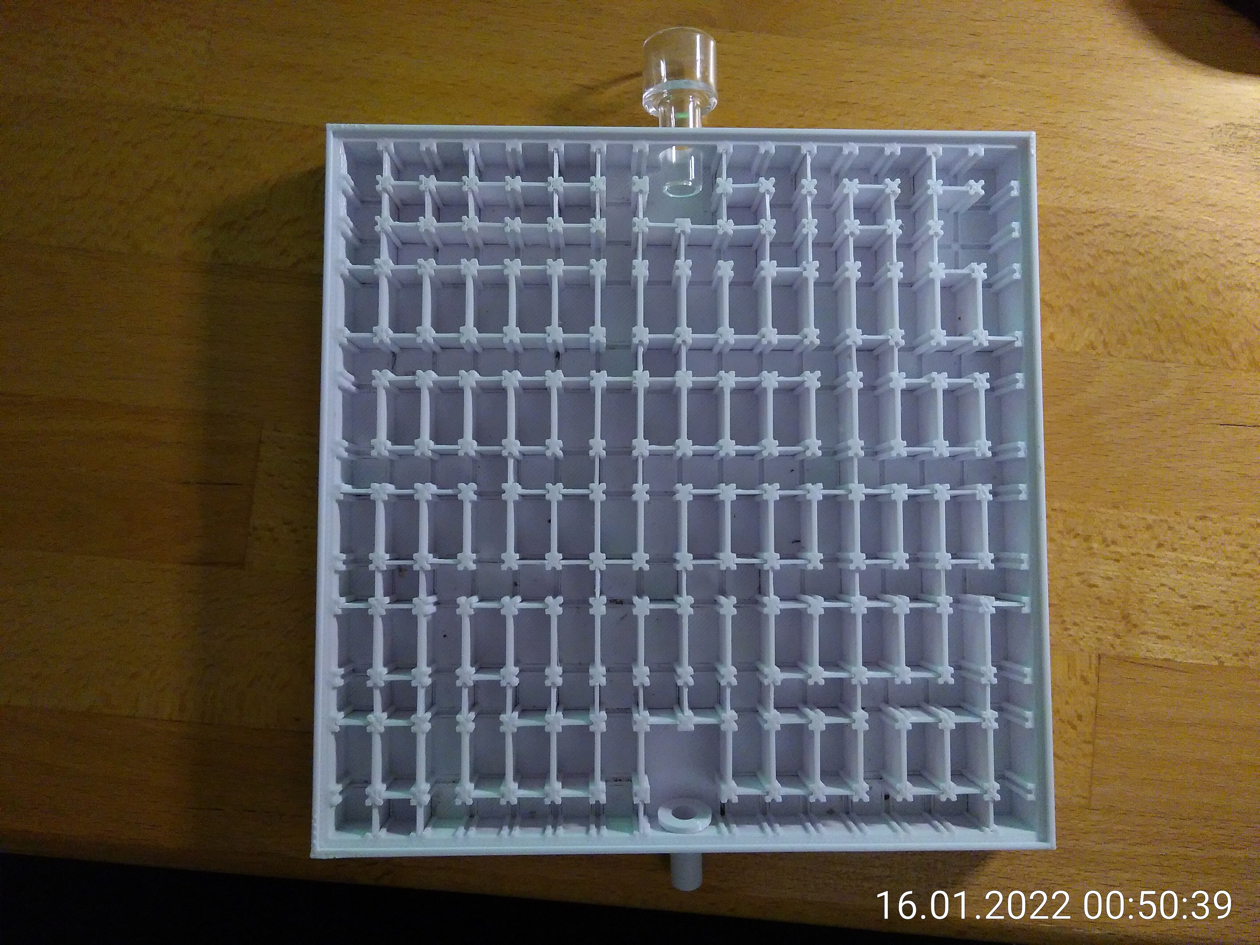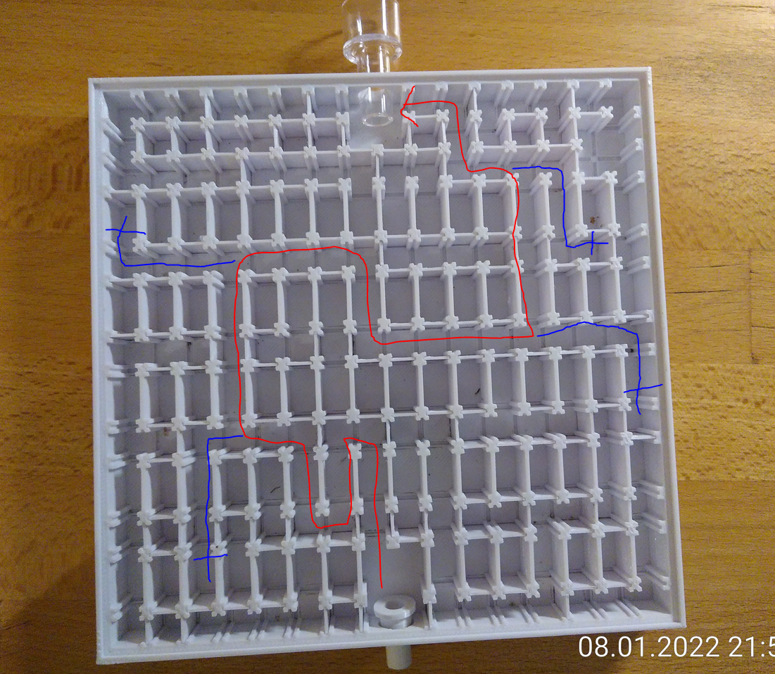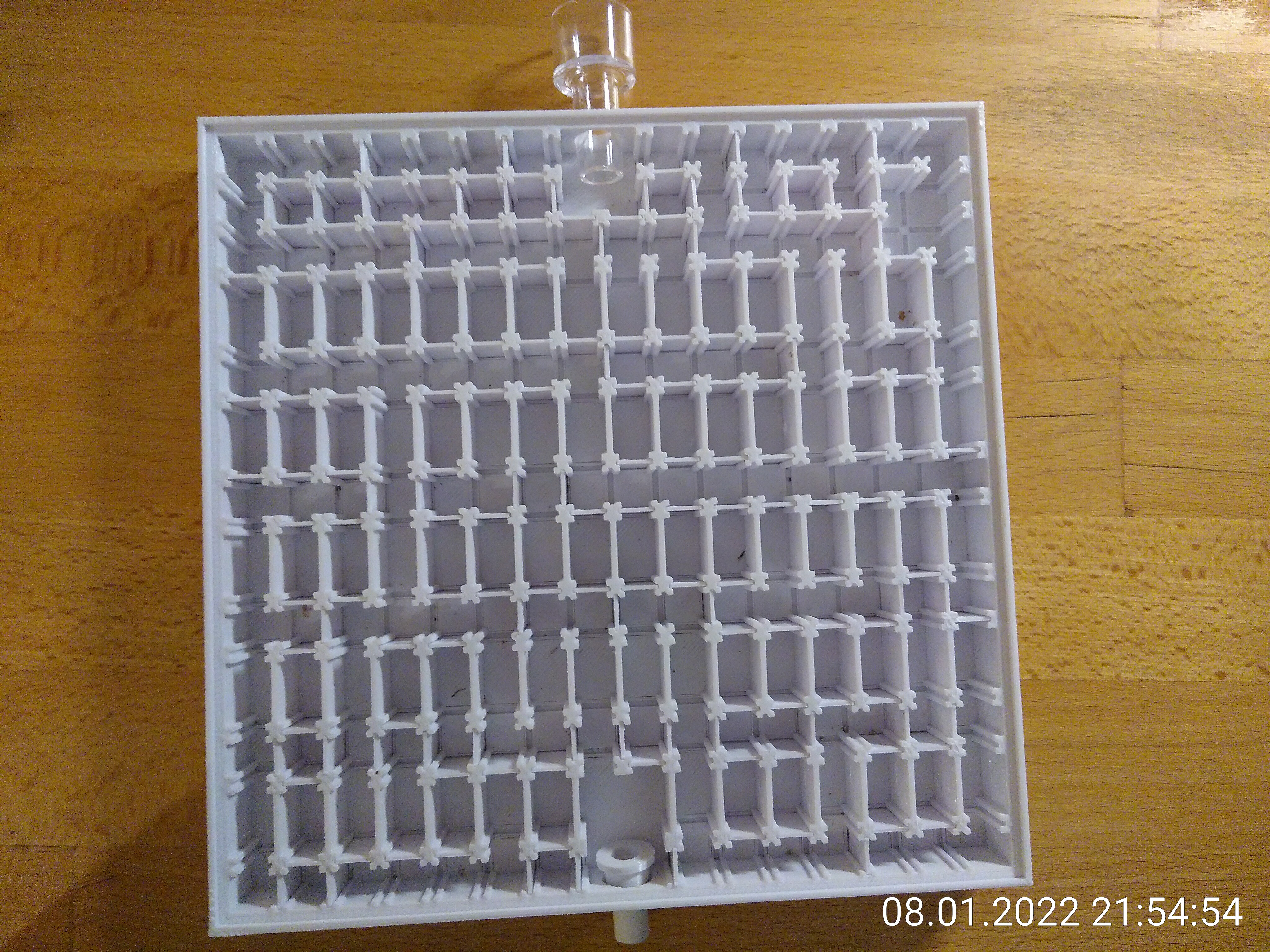 Runde 10 ist offiziell beendet und um 21:57 Uhr hat Runde 11 begonnen. Eine Ameise war schon drin, bevor ich das Glas auflegen konnte. Der Aufbau ist ähnlich der letzten Runde, aber einfacher. Der Weg ist kürzer und hat nicht so viele Sackgassen, die auch kürzer sind. Als Belohnung gibt es Invertzuckerschorle.