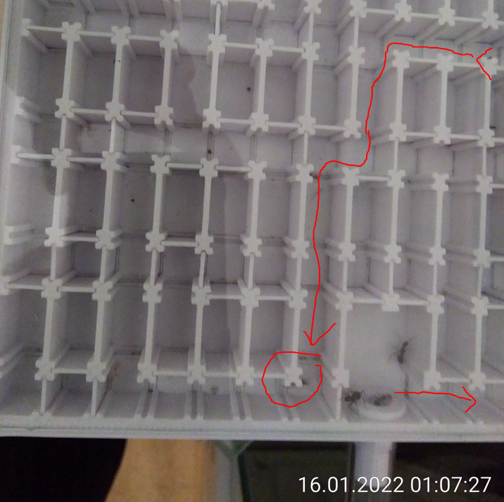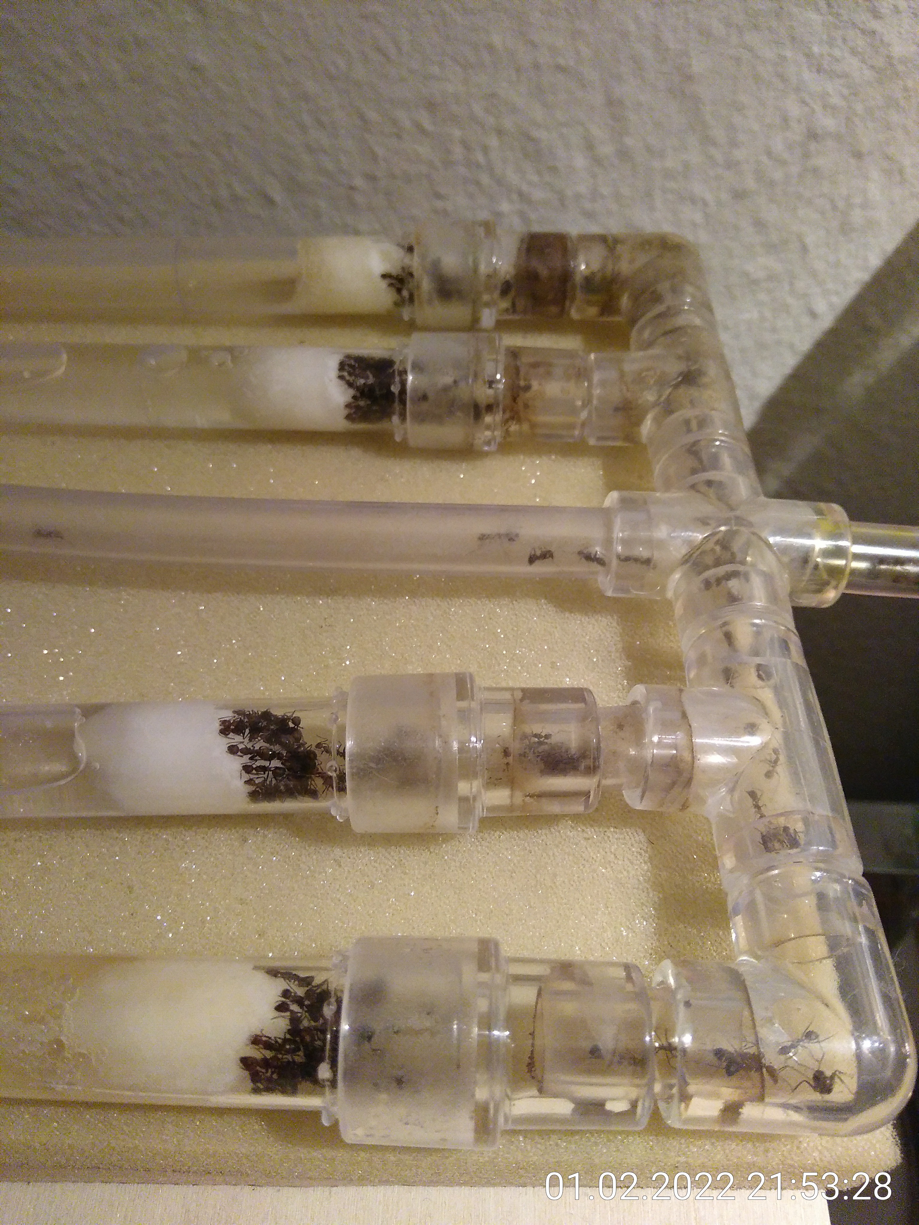 Camponotus nicobarensis haben ab einer gewissen Koloniengrösse viele Kundschafter, das bemerkst Du bei Deinen LAB-Versuchen ja auch gut. Ich habe bei meinen zwischen Weihnachten und Neujahr (glaube ich) die leerstehende Arena angeboten und es ging verdammt schnell bis ich dort Ameisen gesehen habe!