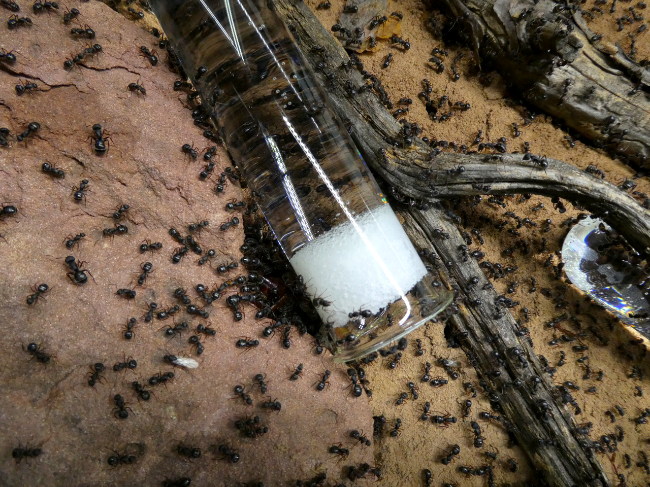 Da der Wasserverbauch der Kolonie nun ziemlich hoch ist, habe ich zusätzlich zu den Tränken noch drei solche Monster-Reagenzgläser reingelegt.