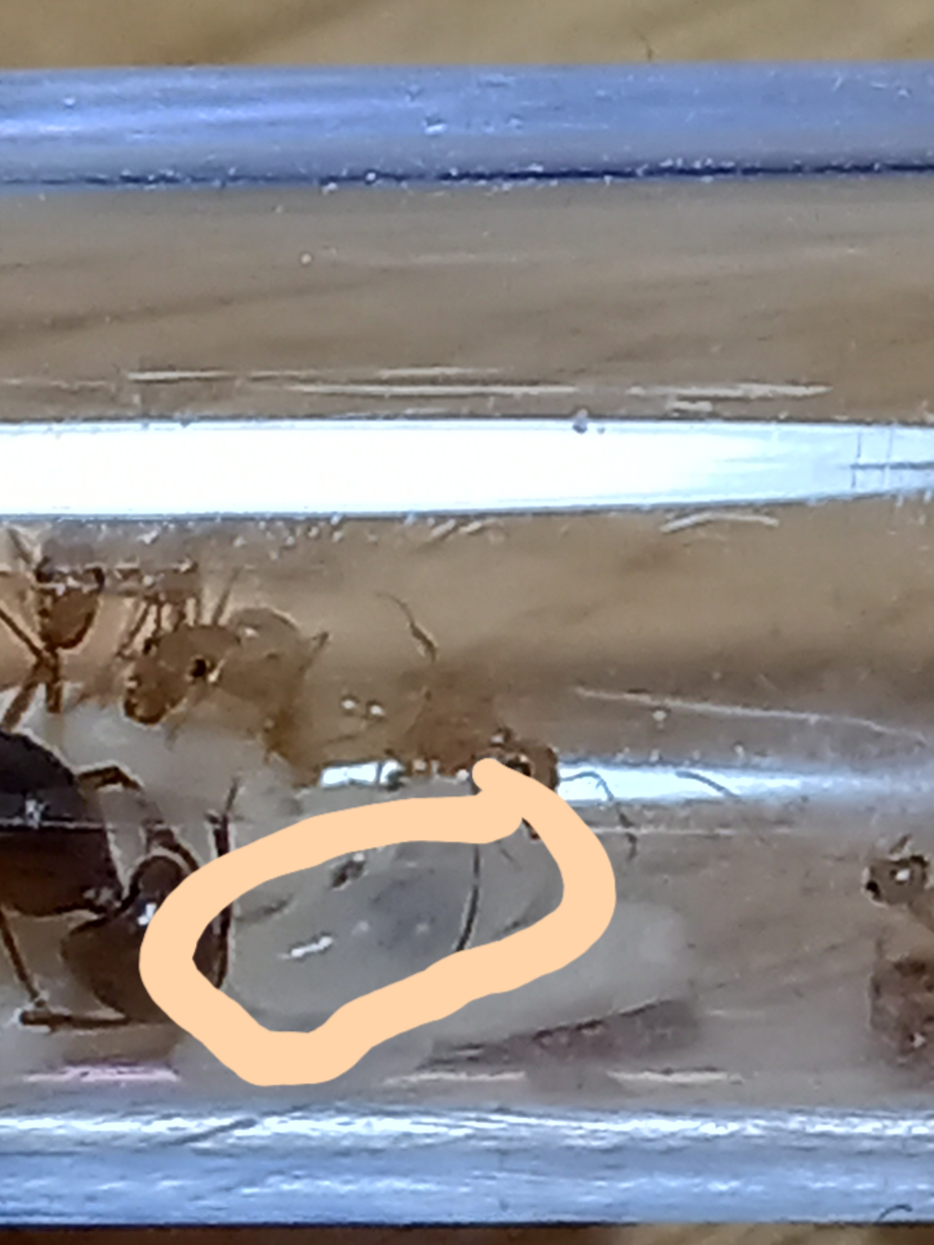 Bissher lĂ€uft alles gut sind ca. 35 Arbeiterinnen davon 3 Medias, 1 groĂe und 2 kleinere. Futter wird reichlich genommen und fĂŒr eine Kolonie im warscheinlich 1ten oder 2ten Jahr reichlich Brut vorhanden vorallem Larven .