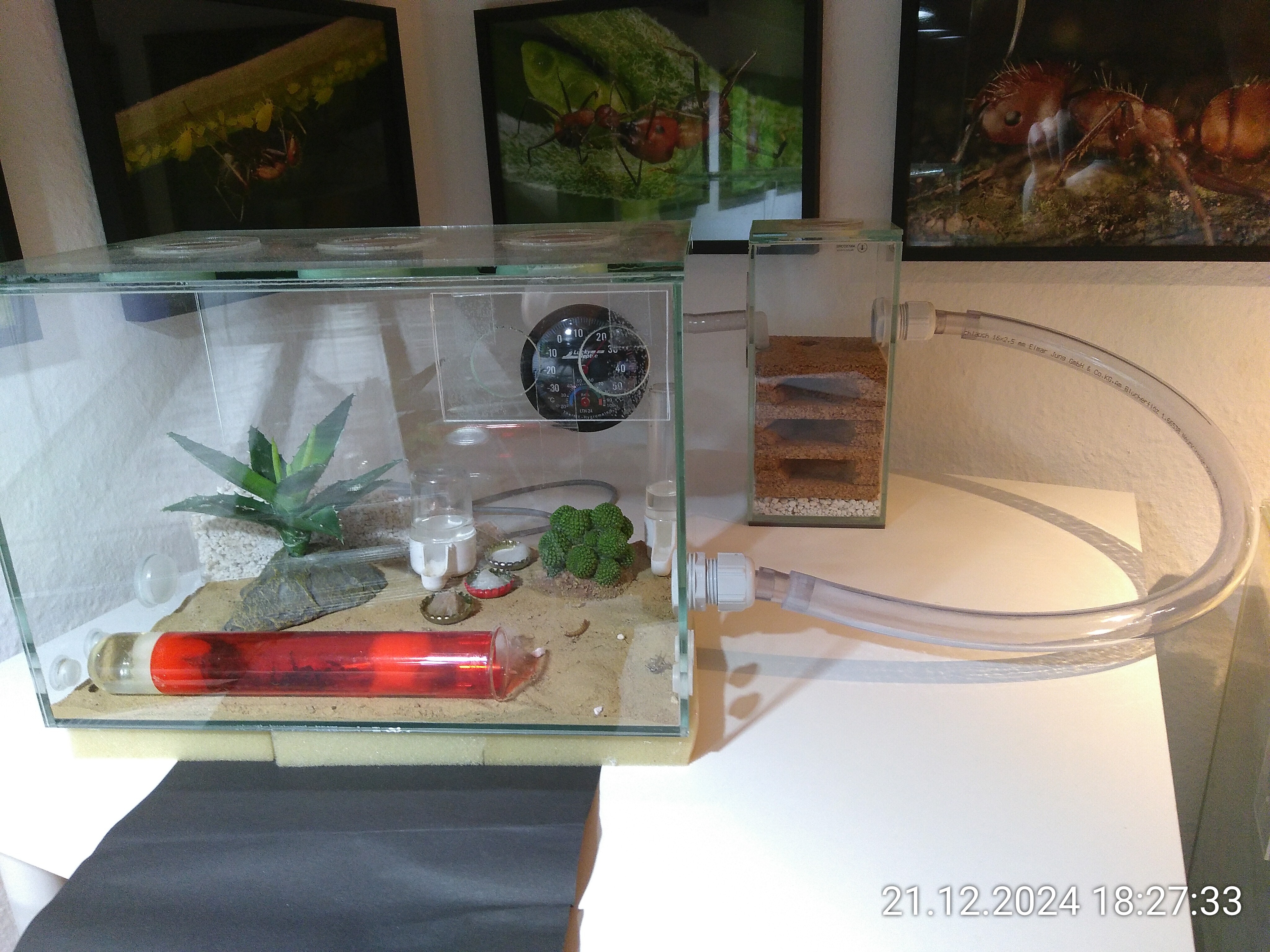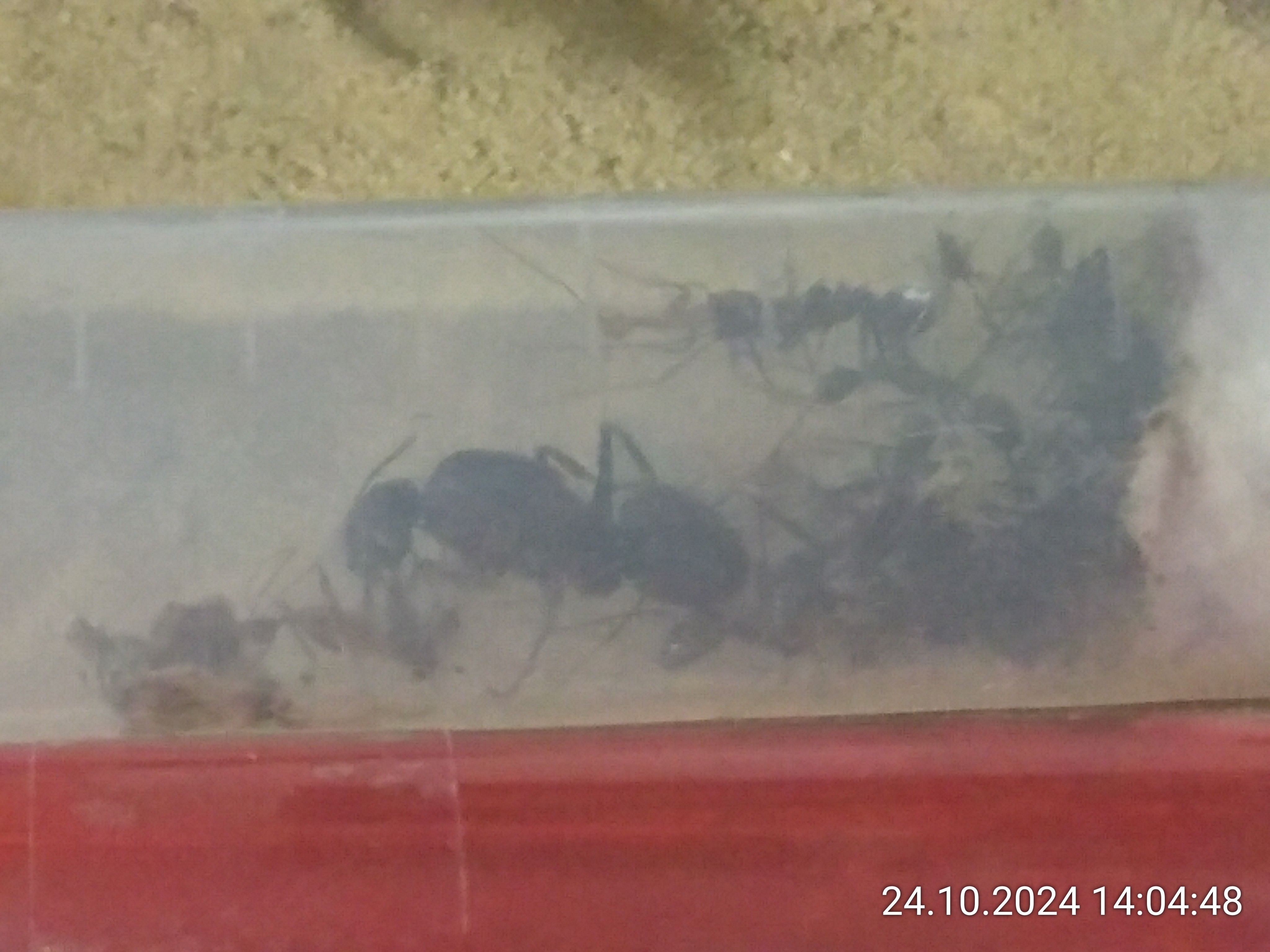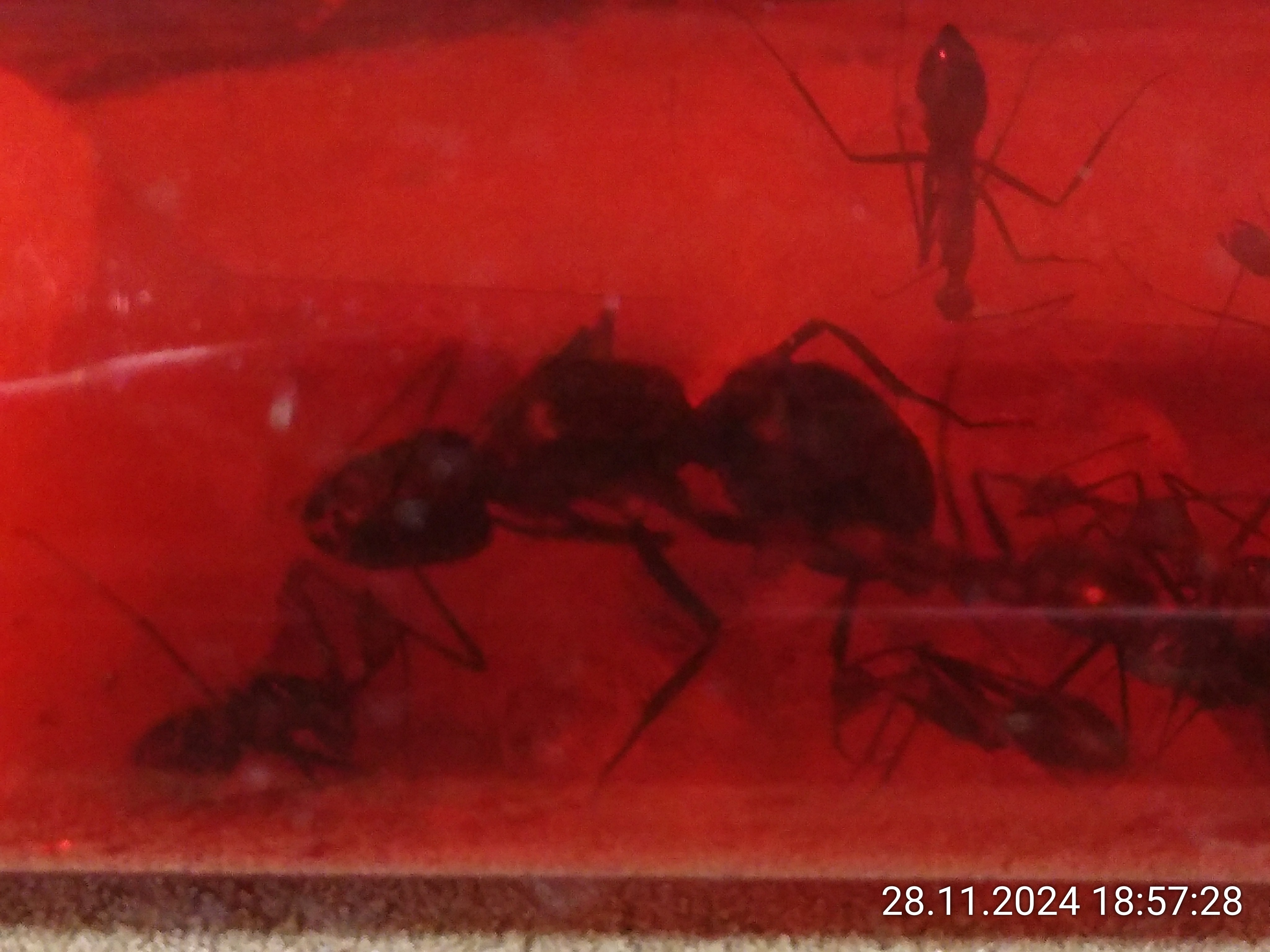 Langfristig sollen sie das Becken meiner anderen Camponotus-Kolonie bekommen, die gerade stirbt. Aber die nächste Zeit müssen sie sich mit einer künstlichen Umgebung arrangieren. Zumindest am Anfang will ich bei dieser Kolonie auch mal wieder etwas vom Gründungs-Spaß erleben und Nesteinsicht haben. Das fehlt mir bei den anderen Kolonien schon manchmal.