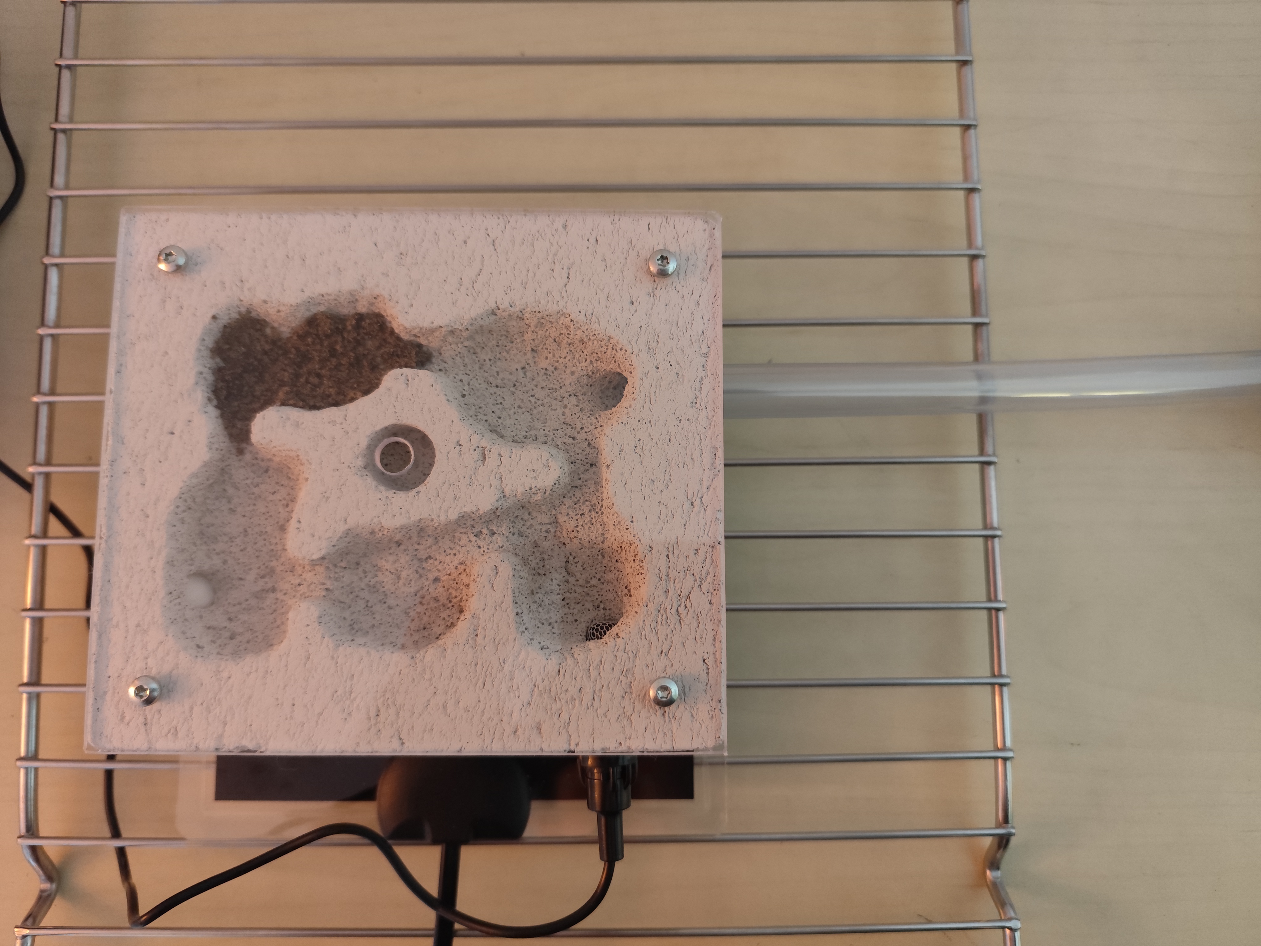 Untergebracht sind sie in einem Becken vom Antstore mit einem selbstgebauten Y-tong Nest. Unter dem Nest ist eine Heizmatte platziert welche das Nest auf ca. 24 Grad heizt. Das Nest ist aber wohl etwas klein geworden, da es laut Verkäufer ca. 10 Arbeiterinnen sein sollten ![]()