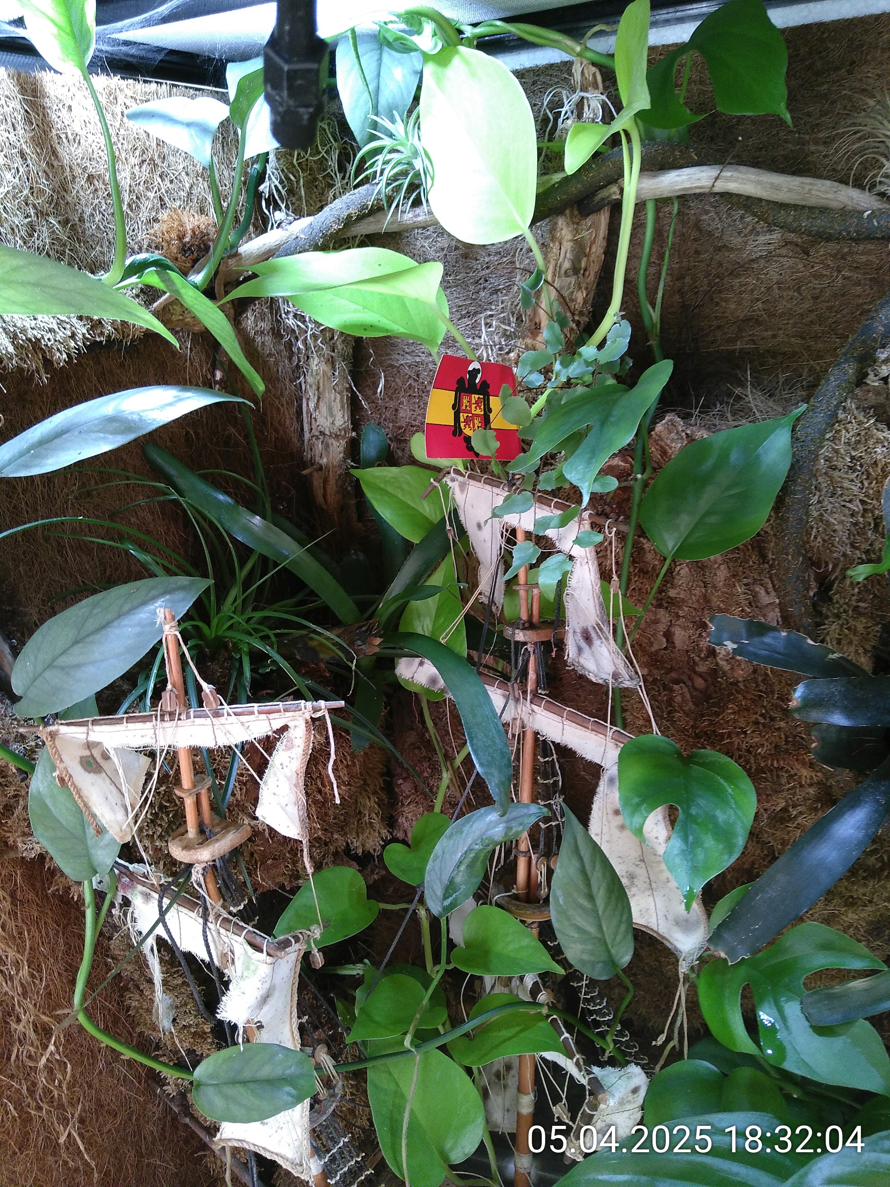 Scheiben putzen und der Frühjahrsputz ist fertig. Den Rest besorgen die Asseln und Schnecken. Hoffentlich kommen bald Ameisen. Es ist jetzt wirklich alles bereit und sieht ungefähr so aus, wie ich mir das vorgestellt hatte. Morgen werde ich noch die Sprühdüsen neu ausrichten. Allein durch das Pflanzenwachstum erreicht das Wasser nicht mehr die Stellen, wo es hin soll.