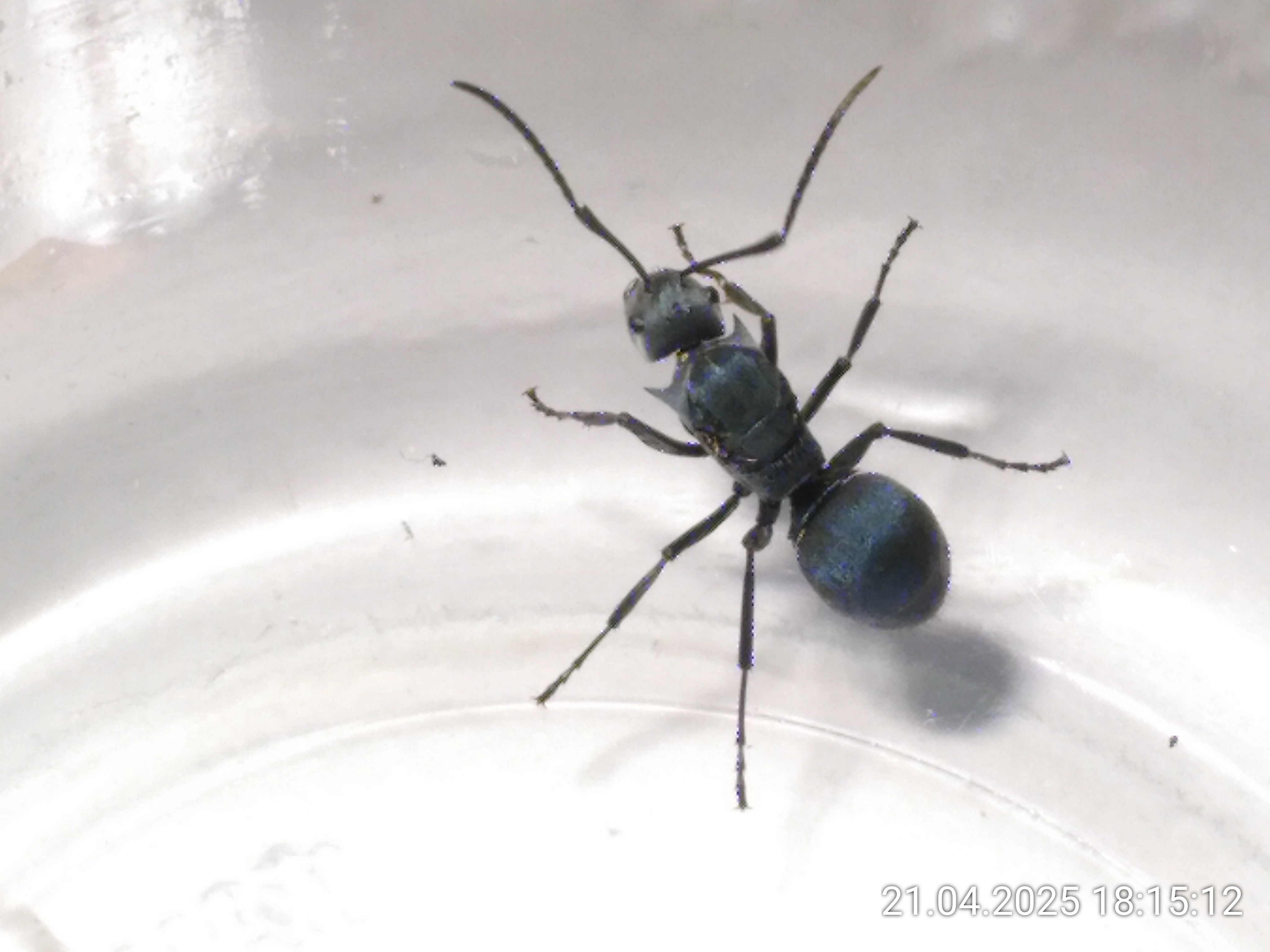 DieKönigin ist wirklich wunderschön. Irgendwann fange ich das auch mit der Kamera ein. Sie ist deutlich größer als 1 cm, hat einen blauen Gaster und einen blau-grünlichen Kopf. Dazwischen gibt es ein schönes Farbspiel. Und mir gefallen auch Ihre "Stacheln" auf dem massiven Mittelteil sehr gut (spiny ants).