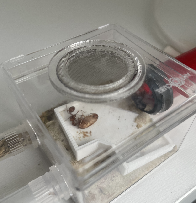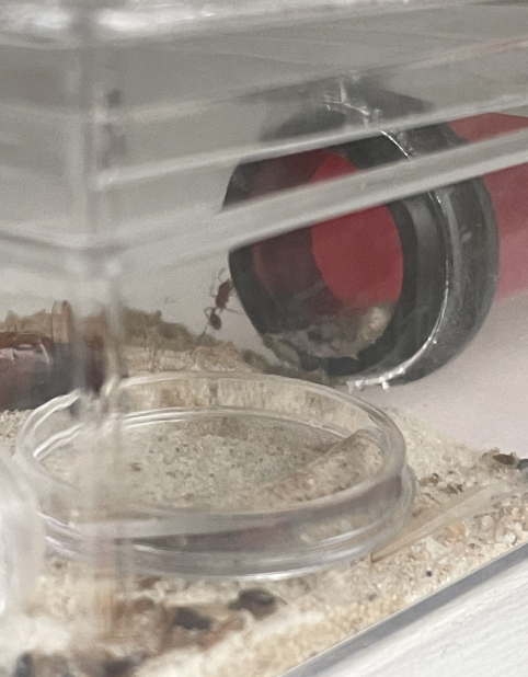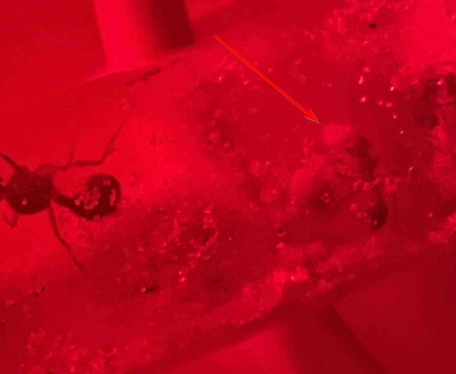 Brut vorhanden und wie bereits beschrieben zwei Arbeiterinnen. Man sieht bereits jetzt Größenunterschiede bei den Arbeiterinnen.