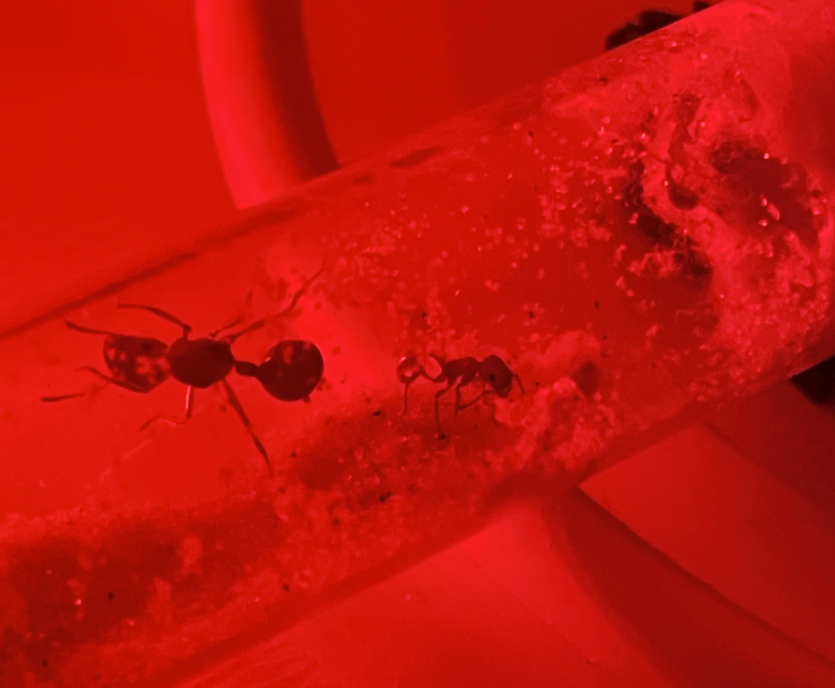 Wie versprochen habe ich nun nochmal in Dunkelheit mit rotem Licht das ganze durchgeführt. Es kam tatsächlich zu keiner großen Bewegung und schon gleich nicht Panik. Nach paar Sekunden hat die eine Arbeiterin etwas