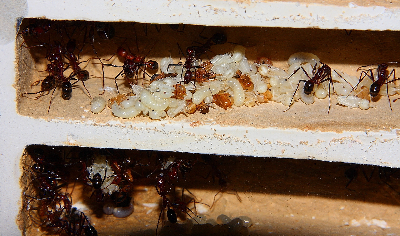 Umzugsfaul oder eifrig dabei, schaut Euch die letzten Nestbilder an, reichlich voll, Ameisen sind in der Lage, bei Platzmangel zu reagieren.
