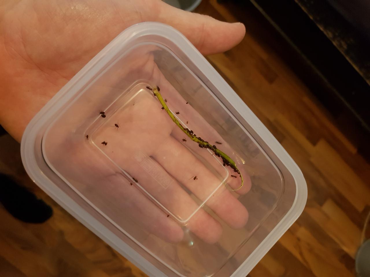 Ein Tipp zum ABSAMMELN: Oft wird die Laus zerquetscht oder der RĂŒssel, der oft tief in der Pflanze steckt, so beschĂ€digt dass die Laus nicht mehr zum Fressen imstande ist und stirbt. Am besten sammelt ihr die LĂ€use mit WattestĂ€bchen von der Pflanze: Erst ein bisschen Ă€rgern und anstupsen, damit sie ihren RĂŒssen lockern. Dann das StĂ€bchen leicht und mit einer drehenden Bewegung ĂŒber den Ast fĂŒhren, die LĂ€use werden sich von der Pflanze lösen und sich entweder fallen lassen (BEHĂLTER DRUNTER HALTEN BEIM ABSAMMELN) oder an die Watte klammern. Es ist empfehlenswert, ein paar Lasius Arbeiter zu behalten fĂŒr den Transport, diese werden sich etwas um die LĂ€use kĂŒmmern bis sie auf der neuen Pflanze sind. Auch ist es gut, einen abgeschnittenen Rosenzweig mit ins GefÀà zu tun: Dies wird die LĂ€use anziehen und beruhigen.